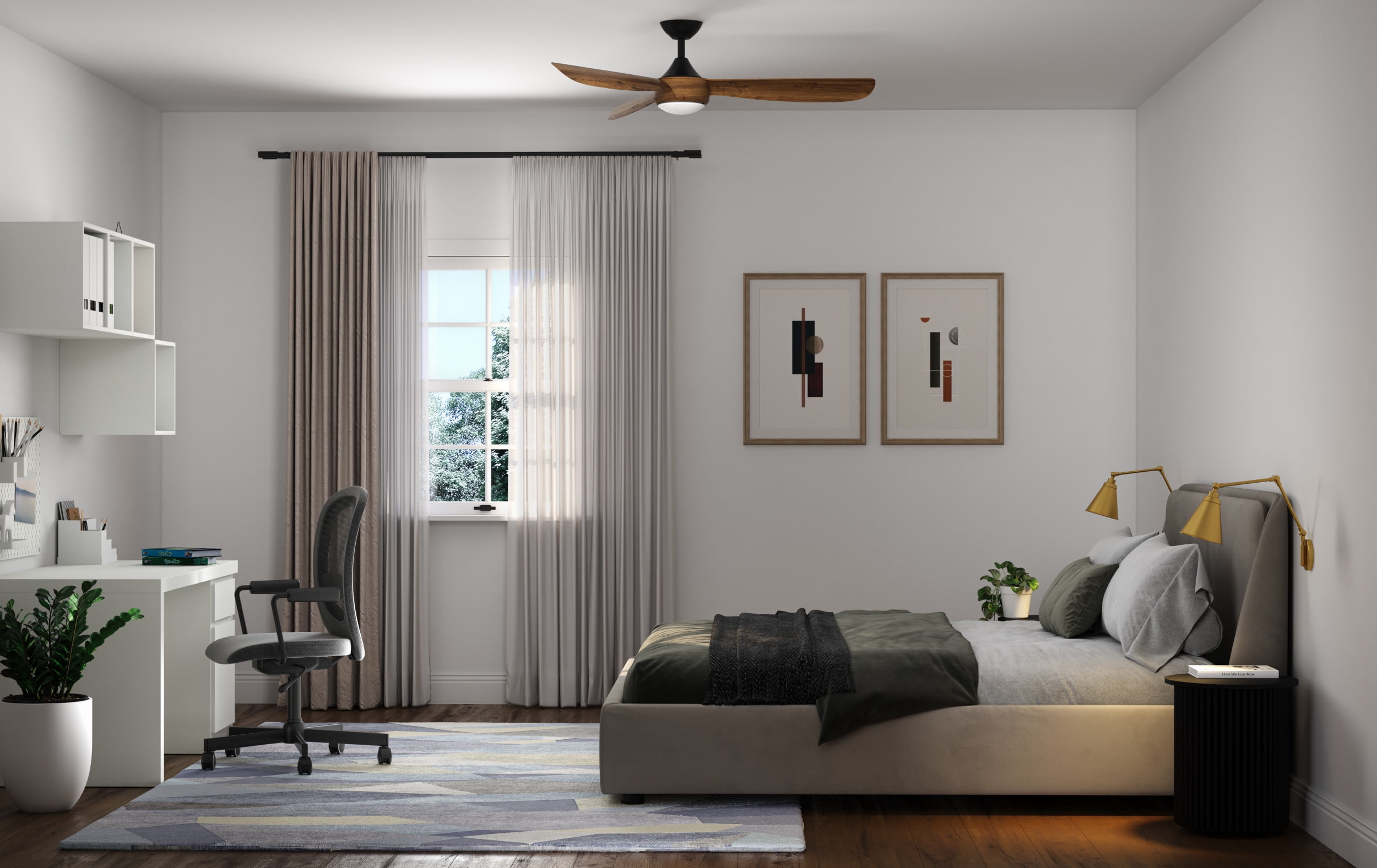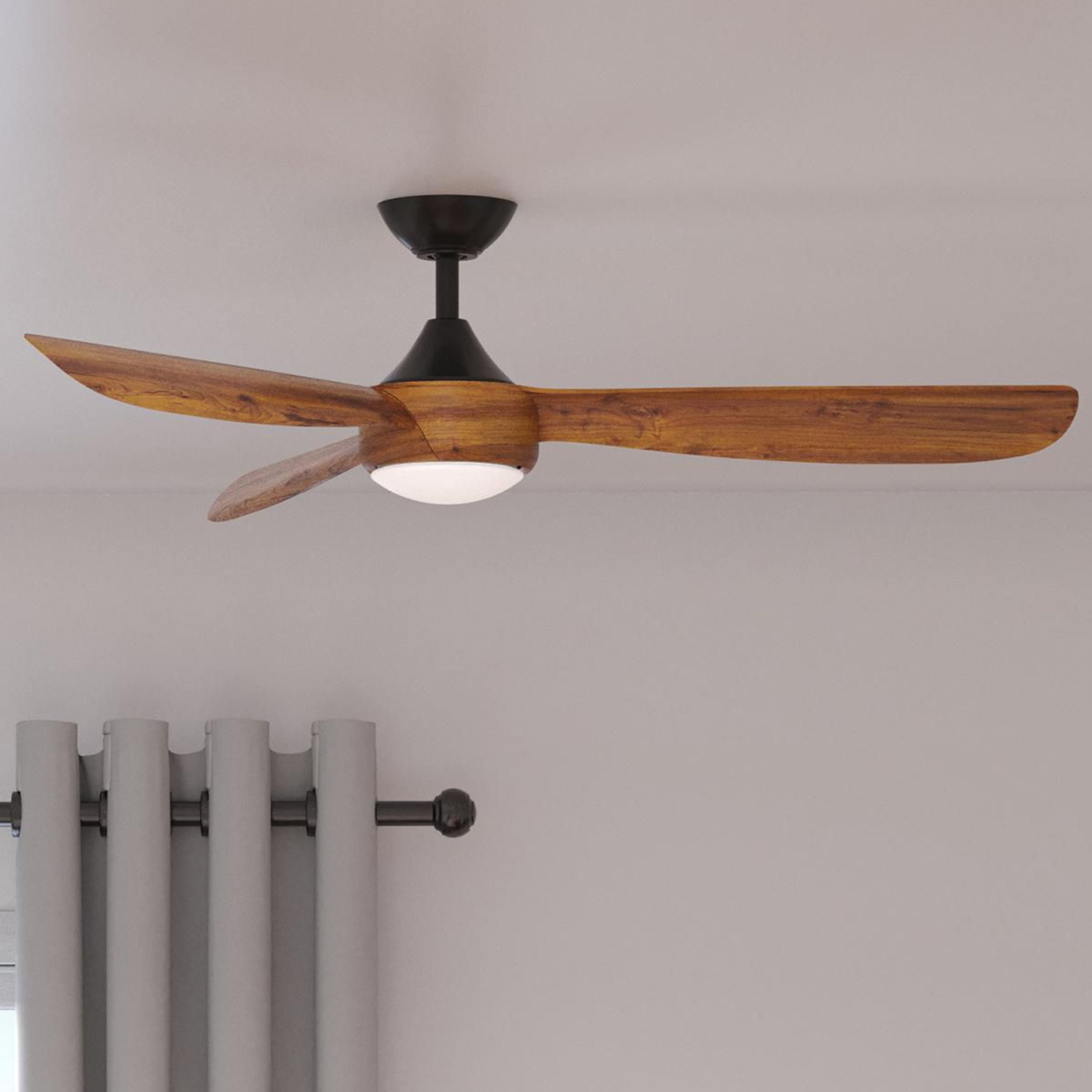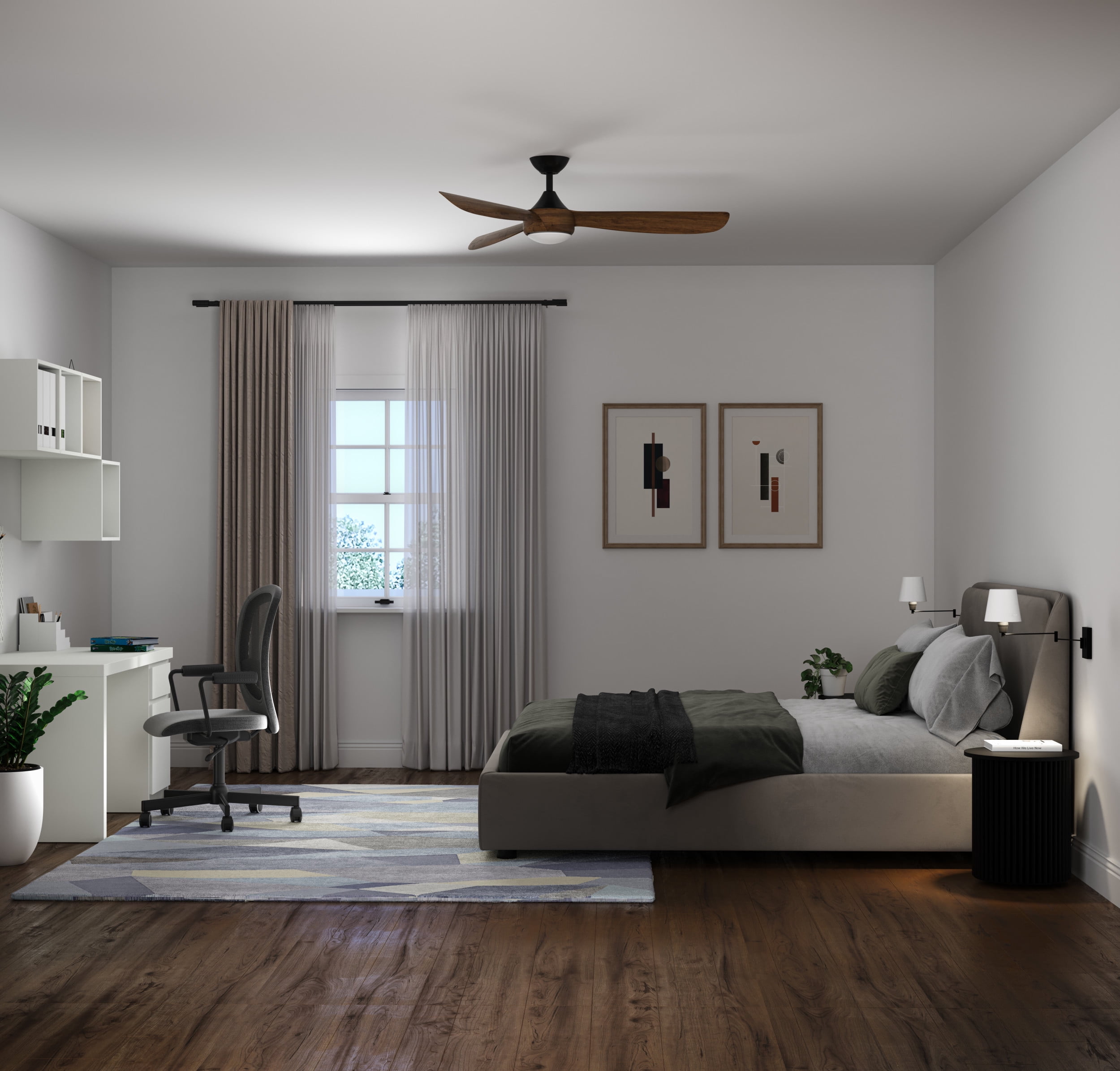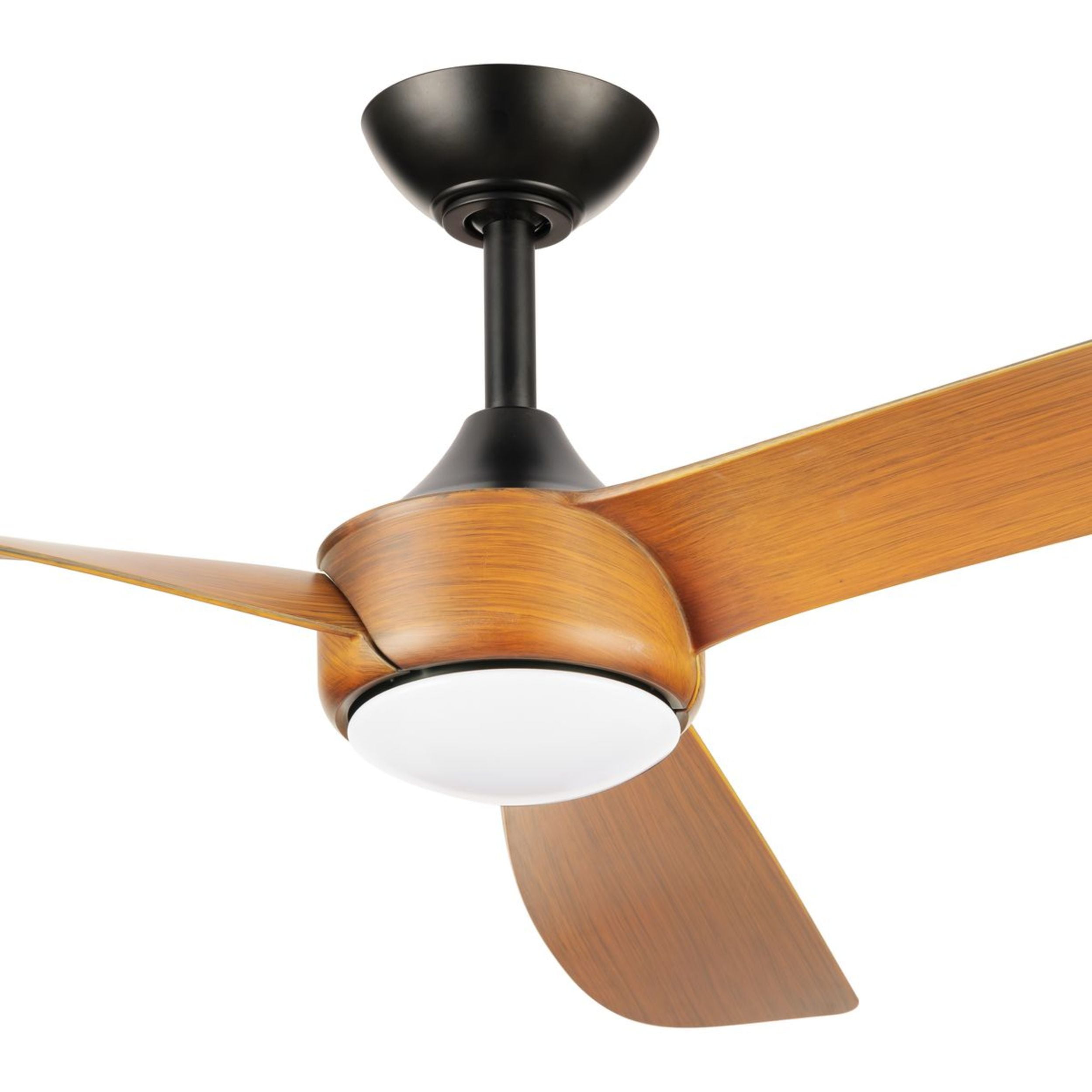 Avec Brechtin Collection 56” Matte Black Modern 18W LED Indoor 3 Blade Ceiling Fan Stylish Design: The sleek matte black finish with wood-finish blades adds a modern and contemporary touch to your living space Versatile Placement: Ideal for bedrooms, bonus rooms, great rooms, or living rooms, this ceiling fan enhances the ambiance of various spaces Compact and Efficient: The ceiling fan measures 56 inches in diameter and 12.94 inches in height, making it suitable for different room sizes. The integrated dimmable LED light source (18W, 3000K) provides energy-efficient and customizable lighting Weather-Resistant: The cETLus Damp Location listing allows for safe and versatile use both indoors and in covered outdoor areas Easy Installation: The user-friendly design and included installation guide ensure a hassle-free setup, allowing you to enjoy the benefits of this ceiling fan quickly