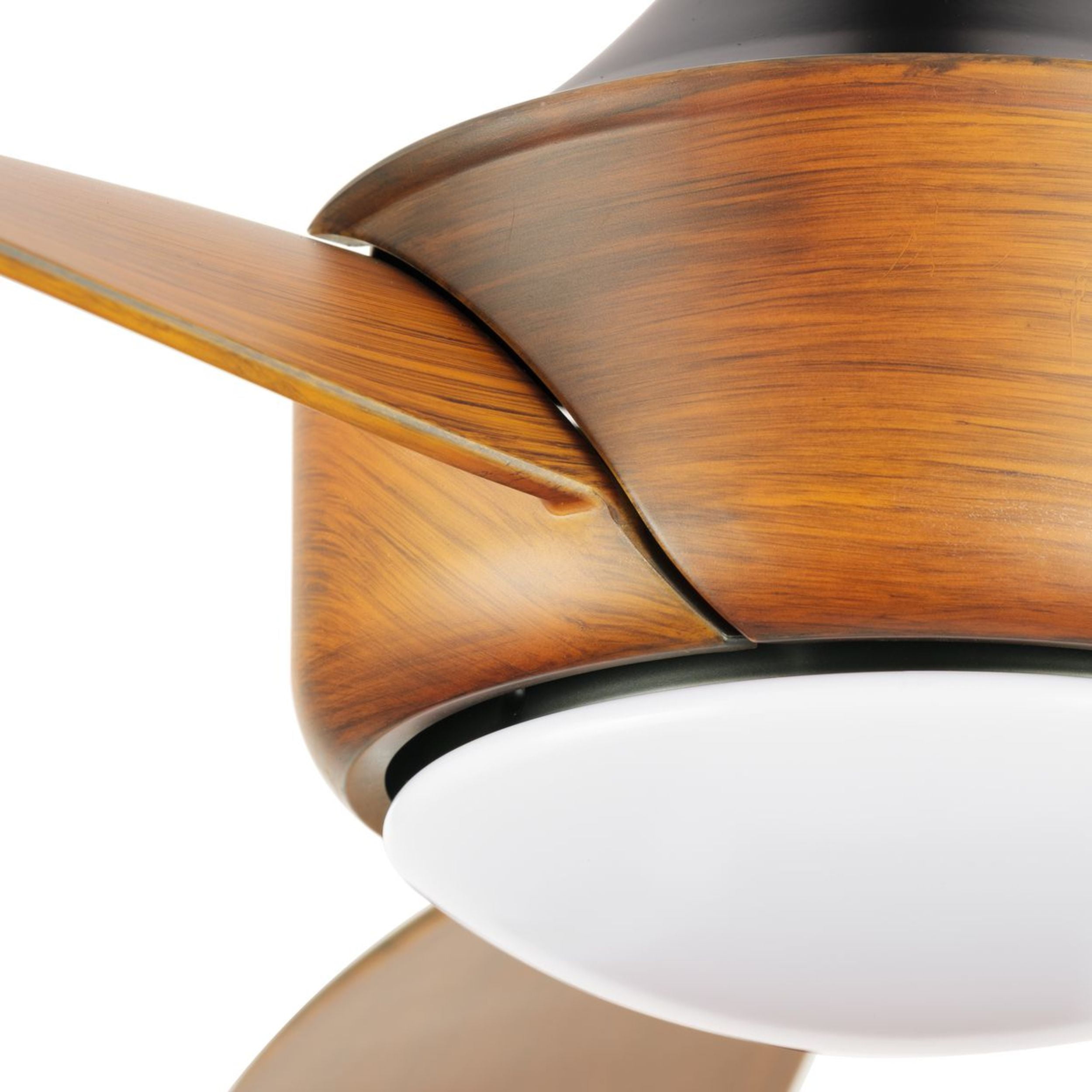 With a seamless blend of cherry fan blades swirling around a black down rod, the Avec 56” Three-blade Integrated LED Ceiling Fan brings style, comfortable illumination and cooling breezes to indoor and outdoor rooms. The A250000-31M-30 features an opal white shade that contains an 18W dimmable, 3000K LED module. A handheld remote control with batteries is included, providing easy and convenient full range dimming and fan operation. Shop the AVEC collection today.