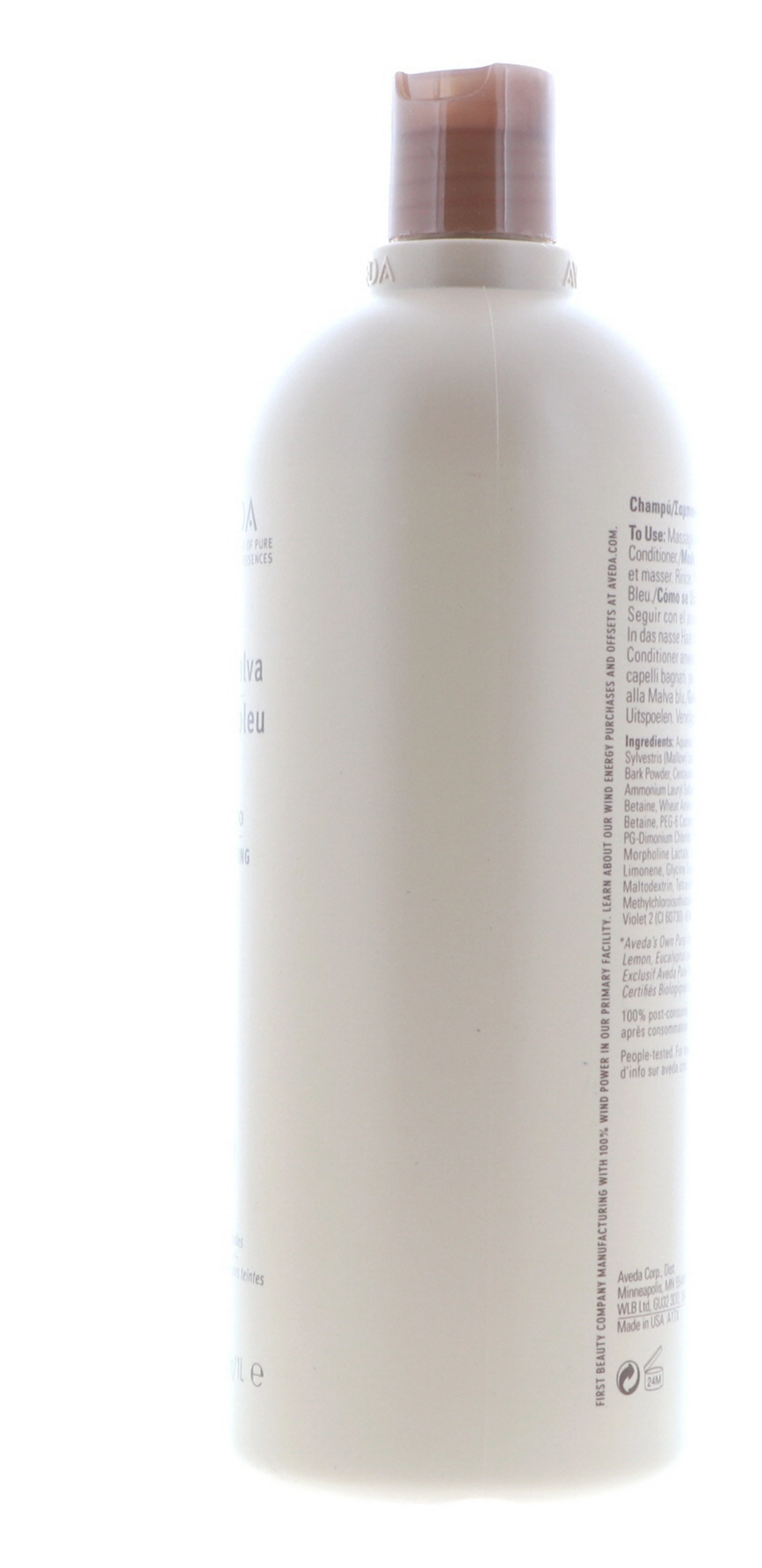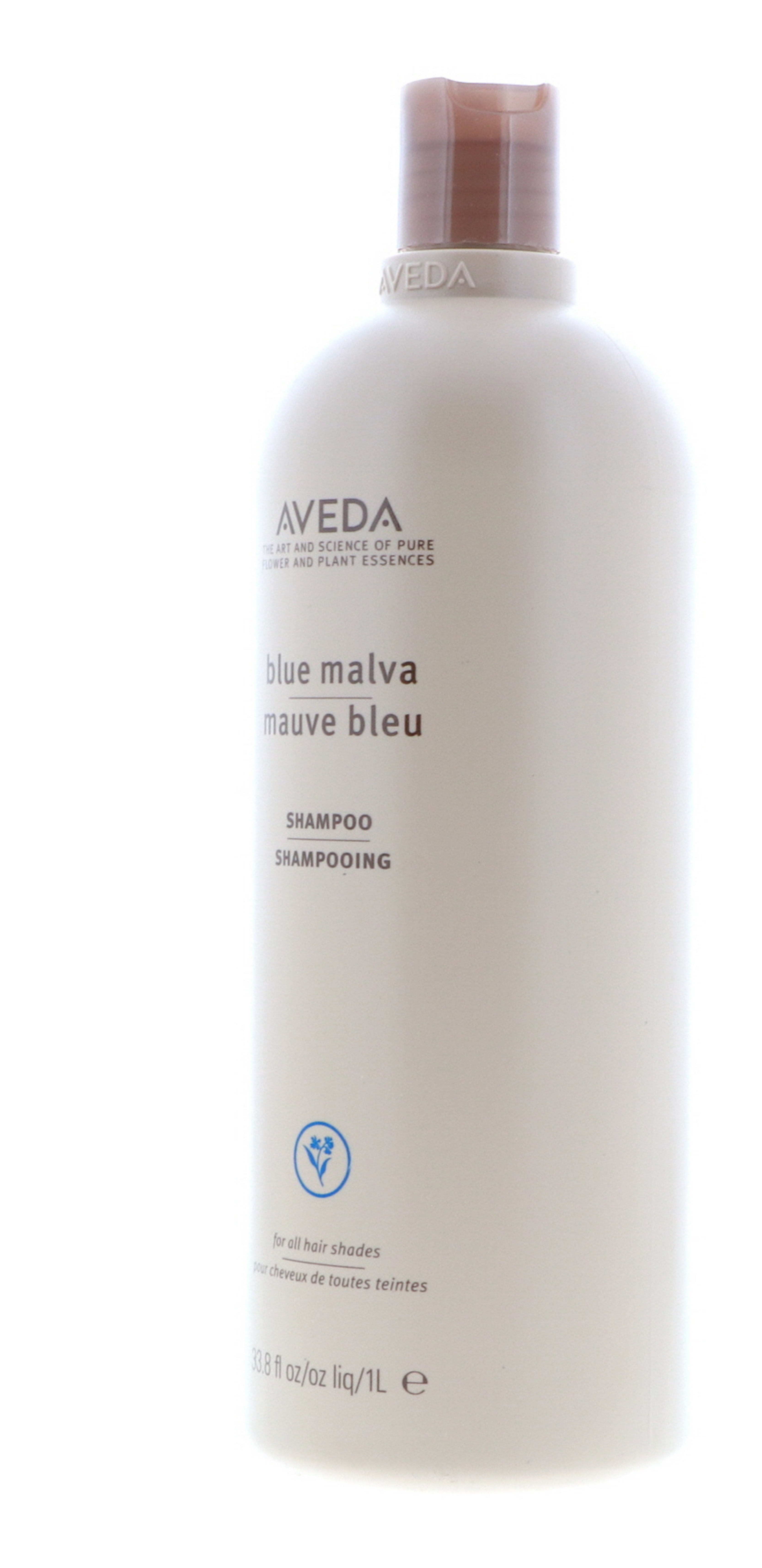 Aveda Blue Malva Shampoo is a hair care product that comes in a 33.8 oz bottle. It is designed to brighten and enhance the cool tones in blonde, silver, and gray hair while also gently cleansing and nourishing. The shampoo is formulated with a blend of natural ingredients such as blue malva, coneflower, and chamomile, and is free of parabens, phthalates, and synthetic fragrances.