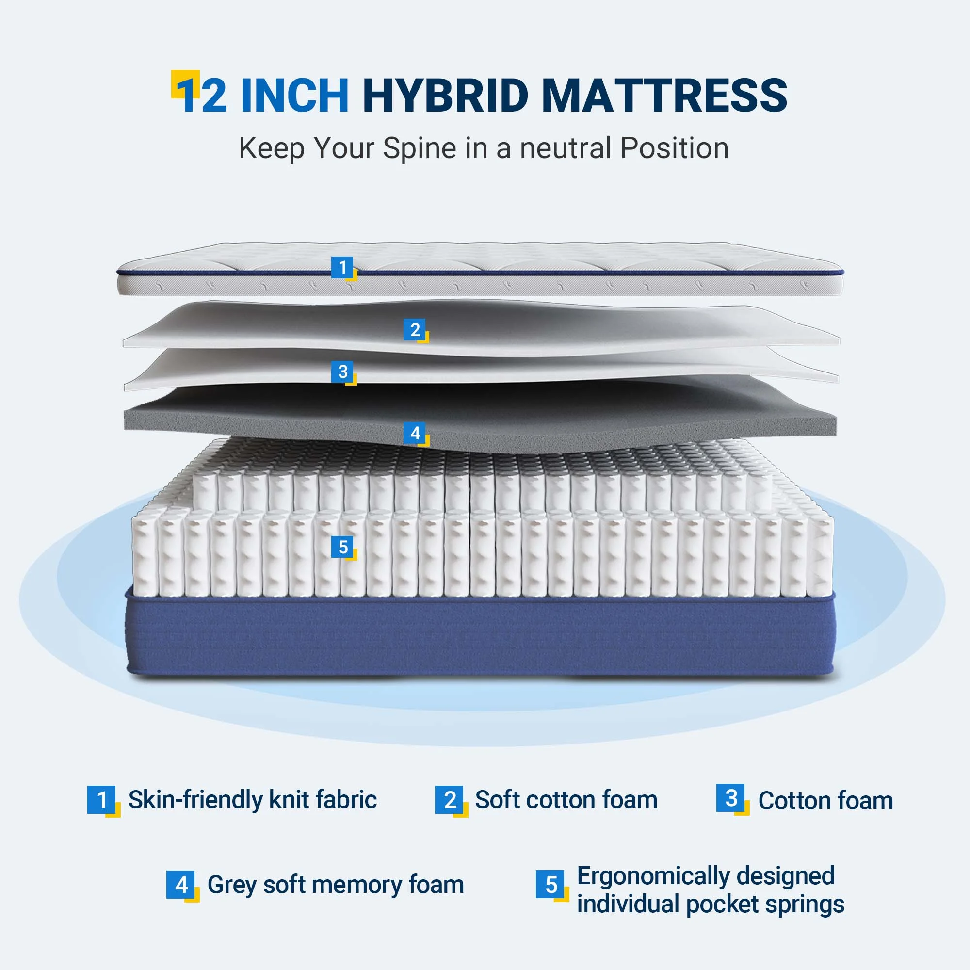 Avenco Airsea 12″ Queen Size Medium Firm Support Hybrid Mattress, Motion Isolation&Preesure Relif, CertiPUR-US