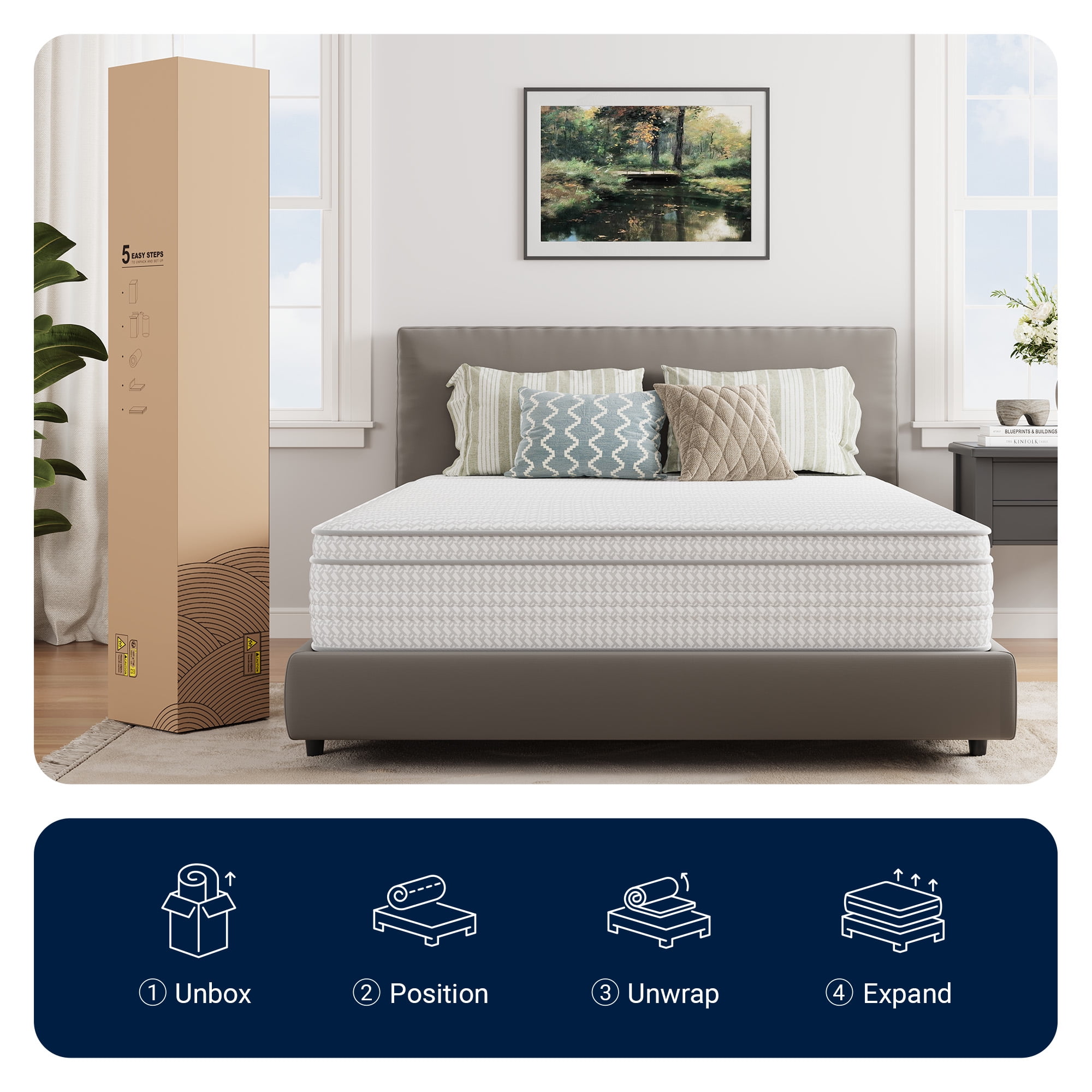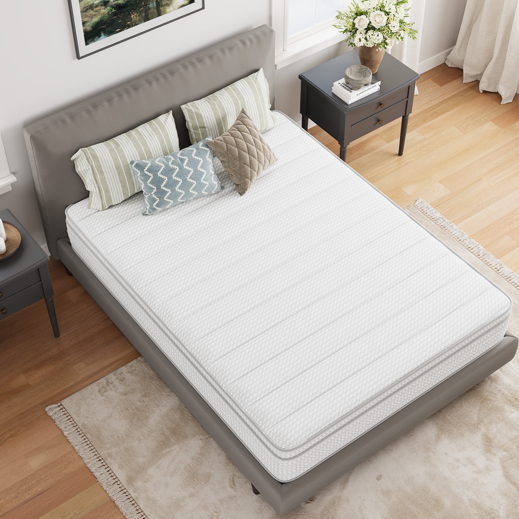 You deserve to get a good night’s sleep, and this Avenco hybrid mattresses is just what you need.This hybrid mattresses design with comfort foam and pocket spring system, provide you with a comfortable sleeping experience. Comfort Airflow Foam is soft and cozy, making your mattress comfortable and breathable. Comfort Foam relieves pressure points so you can wake up without back pain. The independent pocket spring design is perfect for sensitive sleeper, each spring works independently. No matter how much you toss and turn, you won’t have to worry about disturbing your sleeping partner and will enjoy a quiet, undisturbed night’s sleep. Our medium firm mattersses comes in box, arrives with a 10-year limited warranty, simply place the mattress on your bed and 72 hours for the mattress to decompress and expand to its shape then enjoy it.