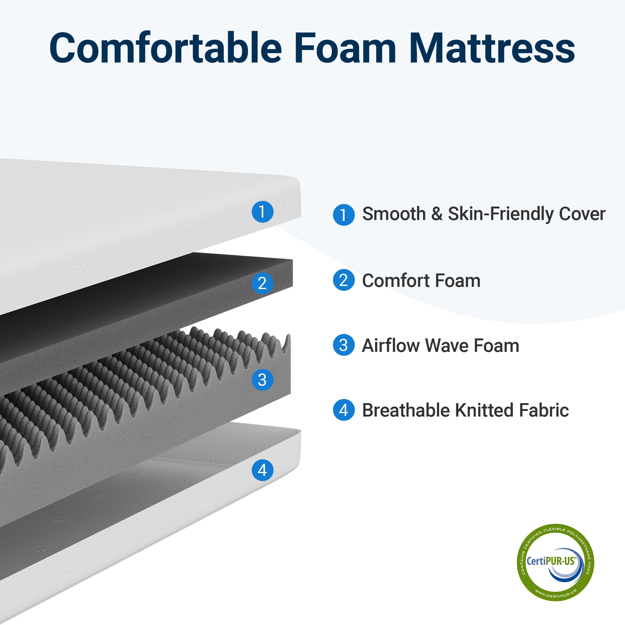 Avenco Snowflake 6″ Medium Memory Foam Mattress,Adult,Twin Size