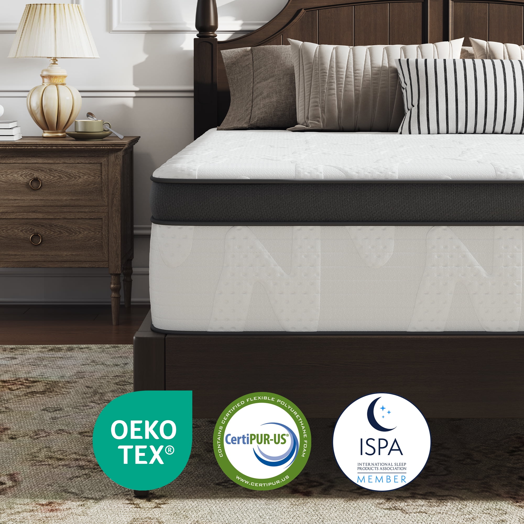 Avenco Whisper 12″ Full Size Medium Firm Individual Pocket Hybrid Support Mattress,CertiPUR-US Certified