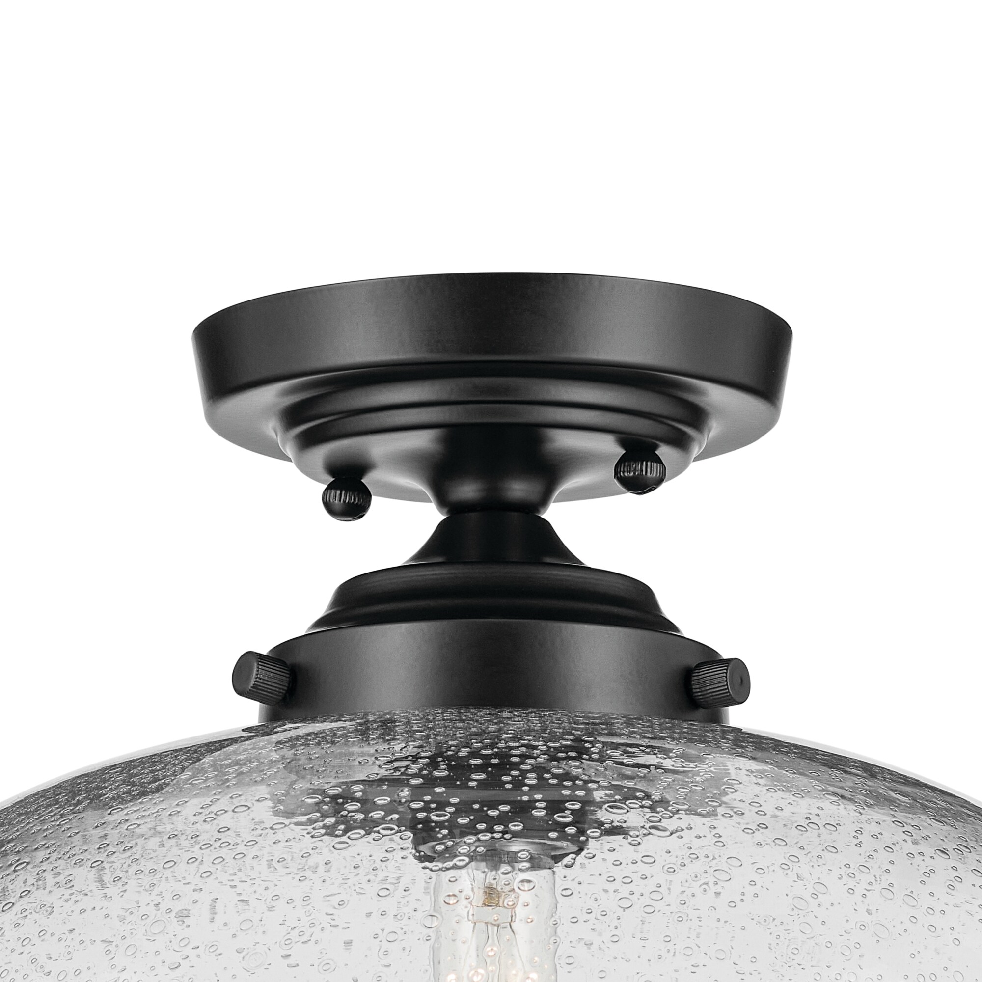 Offering convenience and ease in coordinating with other lighting options, the Avery 1 Light Flush Mount is truly as versatile as it is beautiful. Avery’s on-trend black finish creates a classic yet dramatic statement to any space while it complements a variety of decor, including industrial aesthetics. Its clear seeded glass adds to its charm by providing a beautiful, ambient lighting to the entire room and is easy to remove for convenience and ease of cleaning and replacement.