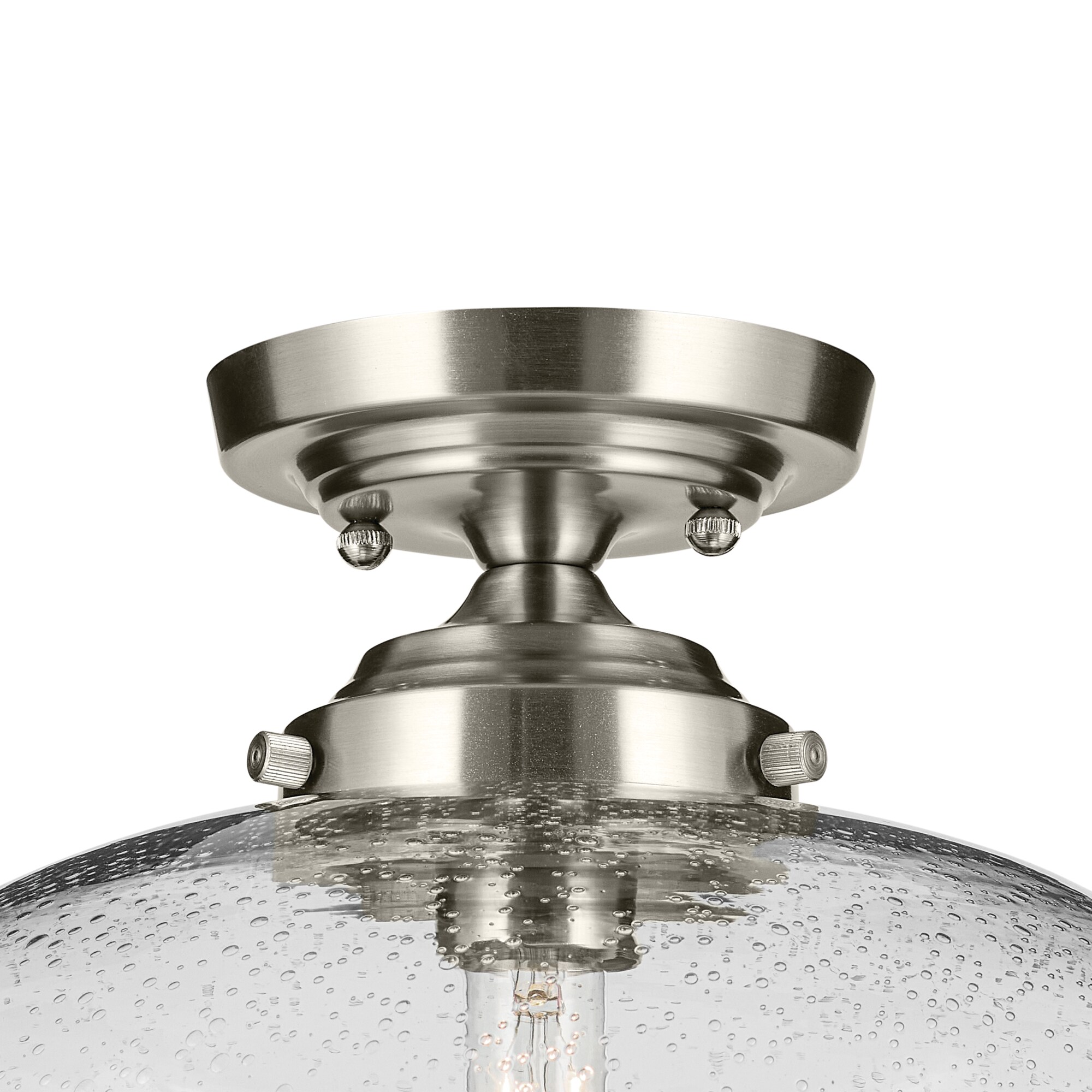Offering convenience and ease in coordinating with other lighting options, the Avery 1 Light Flush Mount is truly as versatile as it is beautiful. Avery’s on-trend nickel finish creates a classic yet dramatic statement to any space while it complements a variety of decor, including industrial aesthetics. Its clear seeded glass adds to its charm by providing a beautiful, ambient lighting to the entire room and is easy to remove for convenience and ease of cleaning and replacement.