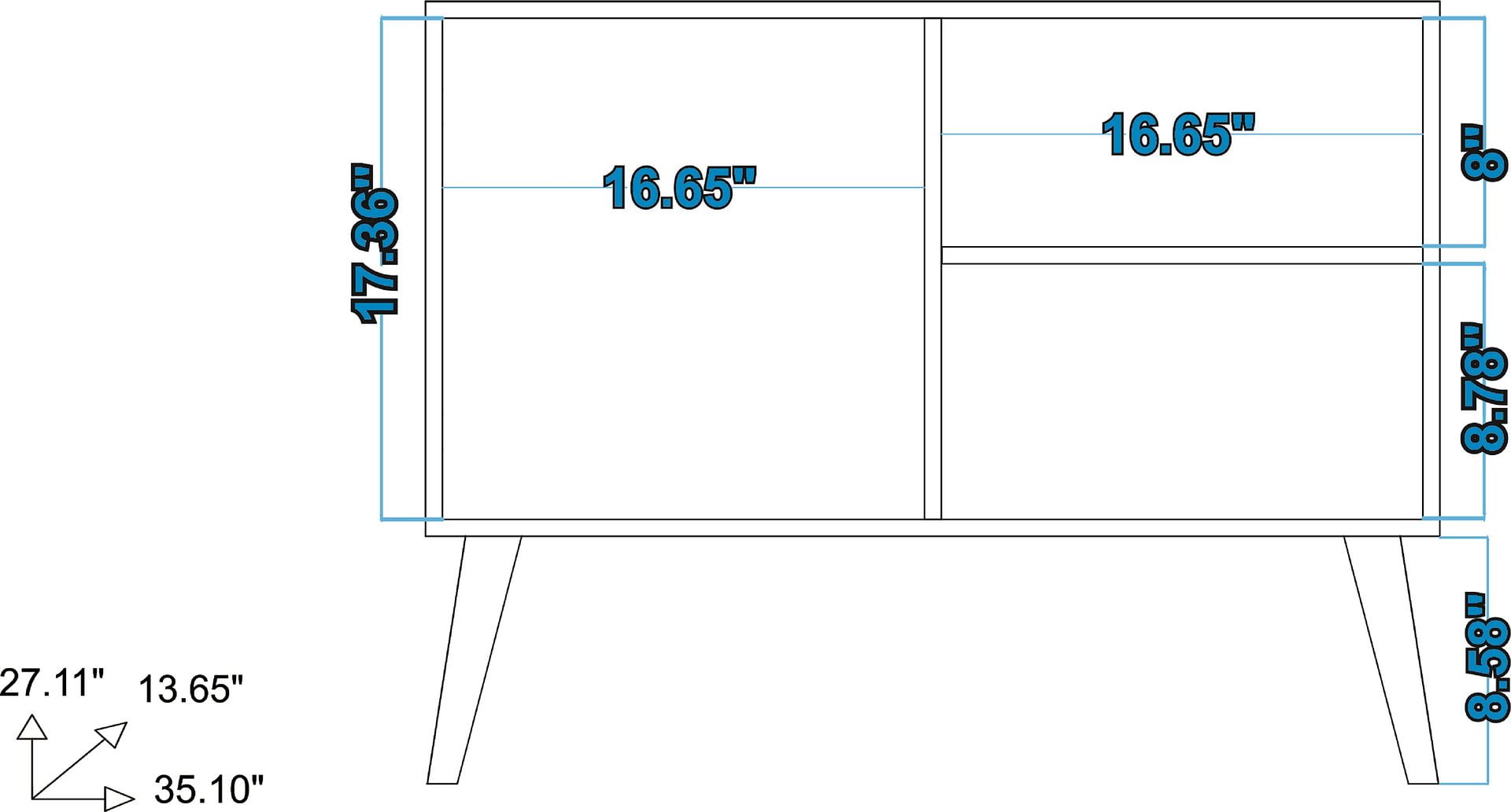 Mid-Century – Modern Funky Double End Table Cabinet for Living Room Use. * Upon Assembly, Measures: 35.43 in. Length, 27.36in. Height, 13.78 in. Depth. * Enhance your home with these beautiful bright colors * Keep thing organized and concealed * Splayed Legs * Unique Square Knob Design * Can be used as a TV Stand and Media Center. Fits 32″ TV Screen * Home Assembly Required. All Hardware Included