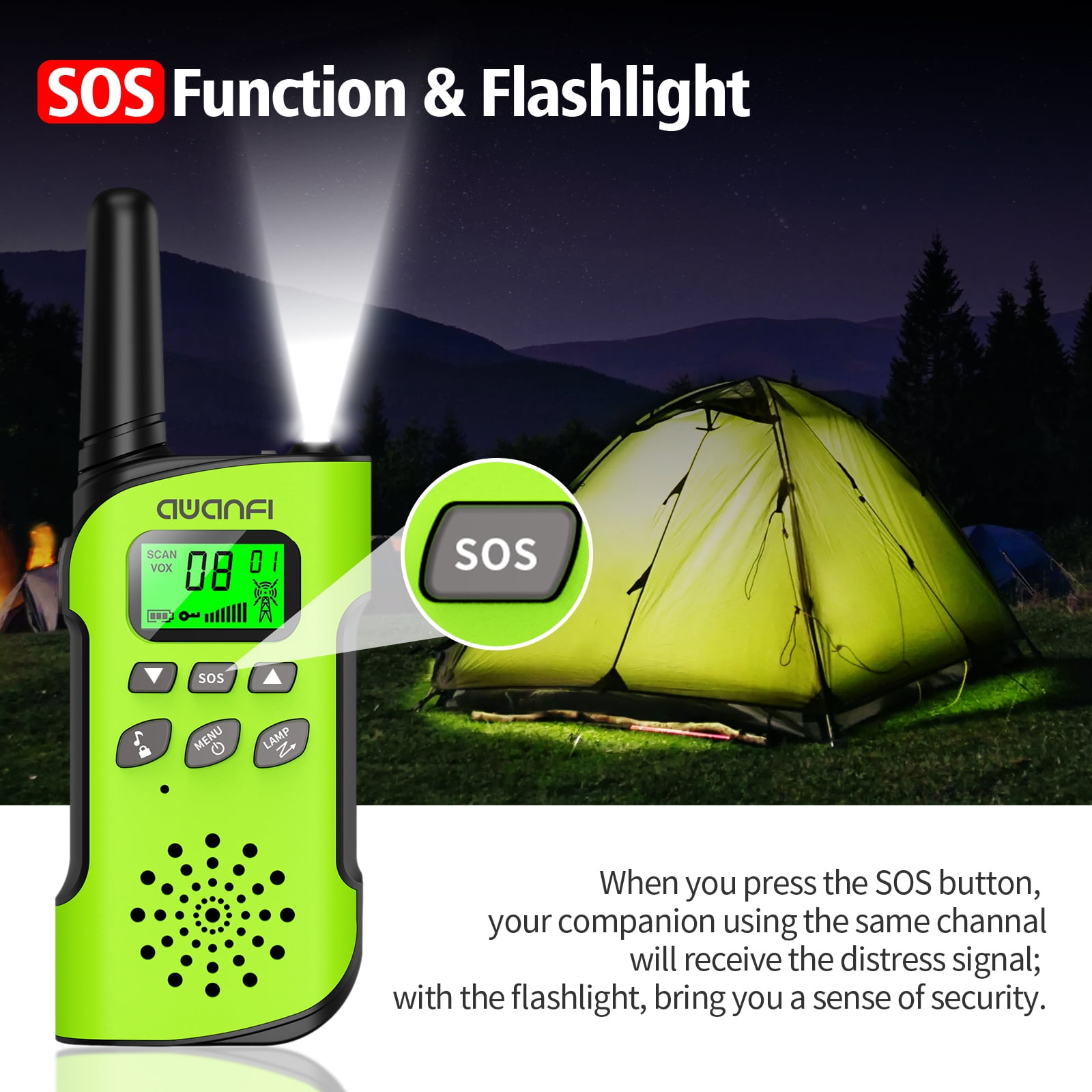 22 Channels Walkie Talkies 4 Pack:With 22 channels and 99 privacy code, AWANFI walkie talkies allow you to easily switch frequencies to find a clear signal. Compatible with any brand walkie talkies for adults. Rechargeable Walkie Talkies:The AWANFI Walkie Talkies features a powerful 1000mAh rechargeable lithium battery, You can enjoy extended communication without the hassle of replacing disposable batteries frequently, making them perfect for group activities, events, or coordinating team operations. Back-lit LCD Screen and LED Flashlight:This walkie talkies has bold green back-lit LCD screen provides high visibility in night. Built-in LED torch can be used as both flash and emergency light.Small size and light weight, Hard and durable shell, drop-proof.walkie talkie let you and your family enjoy games or outdoor adventures. Long Distance Walkie Talkies:In cities or towns, walkie talkies can reach 1-3 miles in most cases,andeven further when used in open areas such as rural areas, suburbs or seaside, etc, where there isno shelter.The actual distance depends on the obstruction of the current environment. Perfect Gift for Family:AWANFI walkie talkies make an excellent gift for kids and families alike. Whether it’s for holidays, birthdays, or family outings, the walkie talkies foster communication, adventure, and bonding, creating unforgettable memories during outdoor activities. FCC ID: ZA3ZQ-GL