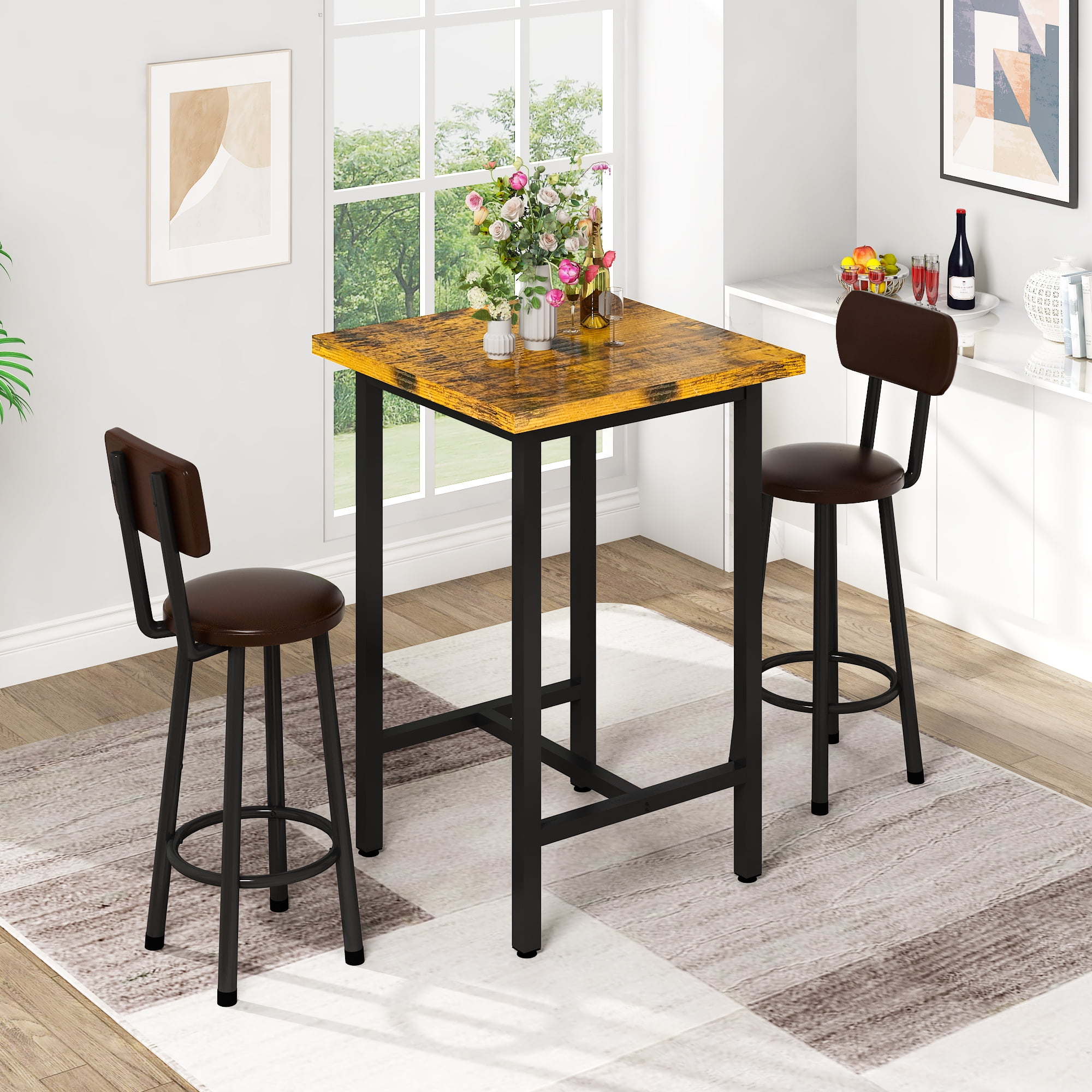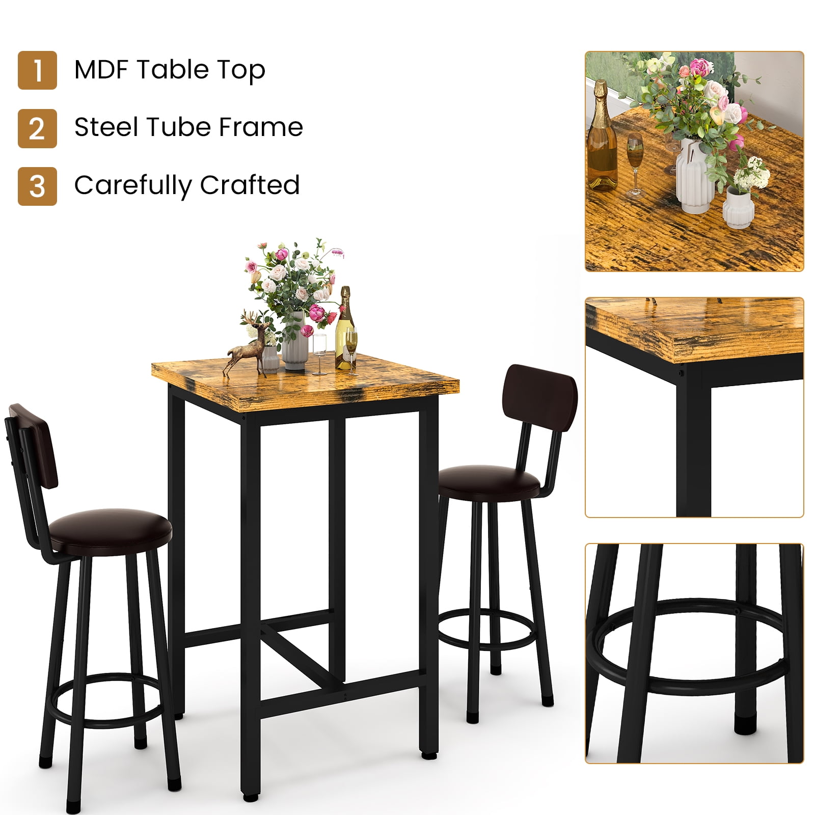 AWQM 3 Piece Bar Set, Double Bar Square Table with Two Back Chairs for Bar Restaurant,Comes with two high stools for pubs, parlors.