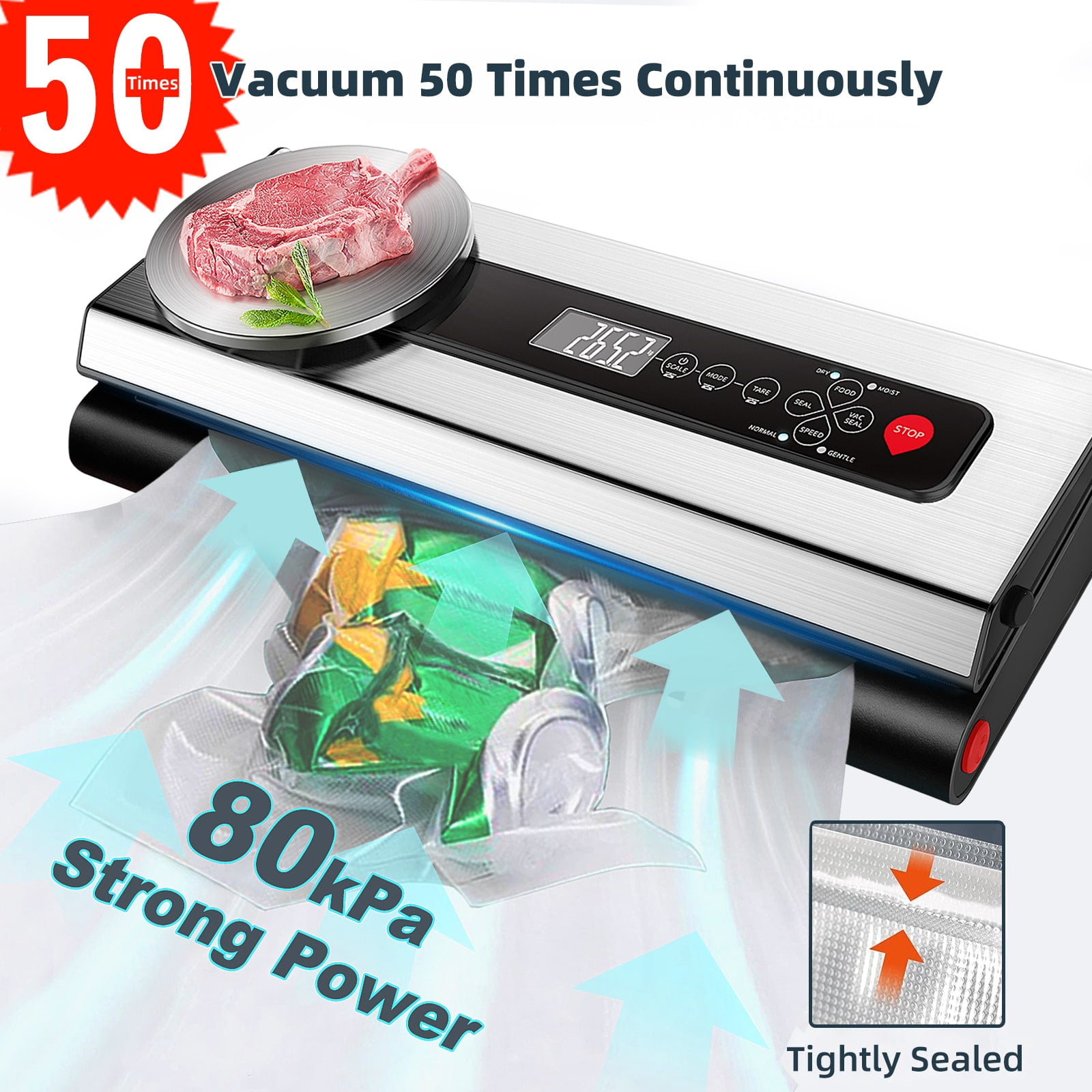 【Powerful 90Kpa Suction】Our Axidou vacuum sealer machine provides a powerful suction of max 90kPa, making it easier and quicker to vacuum all kinds of food. Save money and time while keeping your food fresh up to 10 times longer than ordinary storage methods in the freezer. 【7-in-1 Functionality】With 7 functions, our Axidou food sealer meets all your needs for preserving various kinds of food. Choose between “Dry&Moist” Modes and “Normal&Soft” Modes depending on the food type. The “SEAL” and “VAC&SEAL” Methods are designed for sealing or vacuuming & sealing bags. Additionally, use the vacuum tube for canisters, jars, or wine bottles. 【Continuous Sealing Capability】Our Axidou vacuum sealer supports 20 times continuous sealing with its 120w strong power. The heavy-duty motor provides REAL 90kpa powerful suction, ensuring a tighter vacuum seal compared to ordinary machines. Vacuum time ranges from 3-10s, while sealing time ranges from 9-12s, allowing you to preserve your food hassle-free. 【Easy to Clean】 The stainless steel surface and smooth cambered vacuum chamber of our Axidou vacuum sealer make it much easier to clean than other brands’ machines. There will be no food residue left in the vacuum chamber, ensuring convenience, hygiene, and cleanliness in your kitchen. With a compact unit size of 14.9*5.7*3.5 inch, it is also easy to store. 【Enhanced Sealing Effect】Our vacuum sealer features a 12mm widened heating strip with a 5-layer wire design, offering a secure and even seal. Enjoy tight, durable, and steady sealing for all your food items. 【2-Year Warranty and Satisfied Service】Our Axidou vacuum sealing machine, you will receive a 2-year warranty and dedicated customer service. Included in the package are 1x vacuum sealing machine, 1x vacuum rolls (8″x80′), 5x pre-cut bags (BPA free, 11″x16″), 5x pre-cut bags (BPA free, 8″x12″), 10x pre-cut bags (BPA free, 6″x8″), 1x user manual, 1x Air suction hose, and 1x power cable.