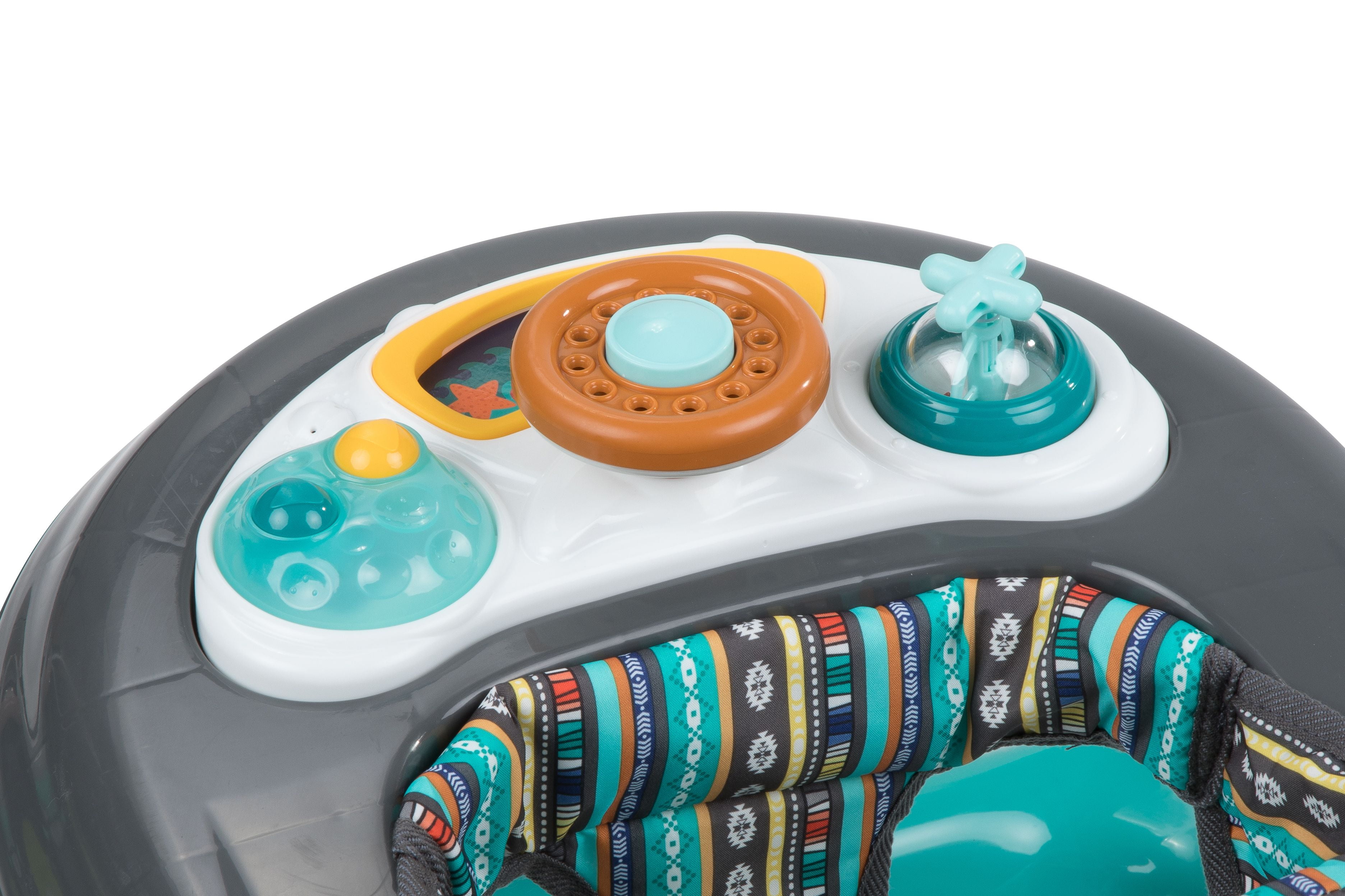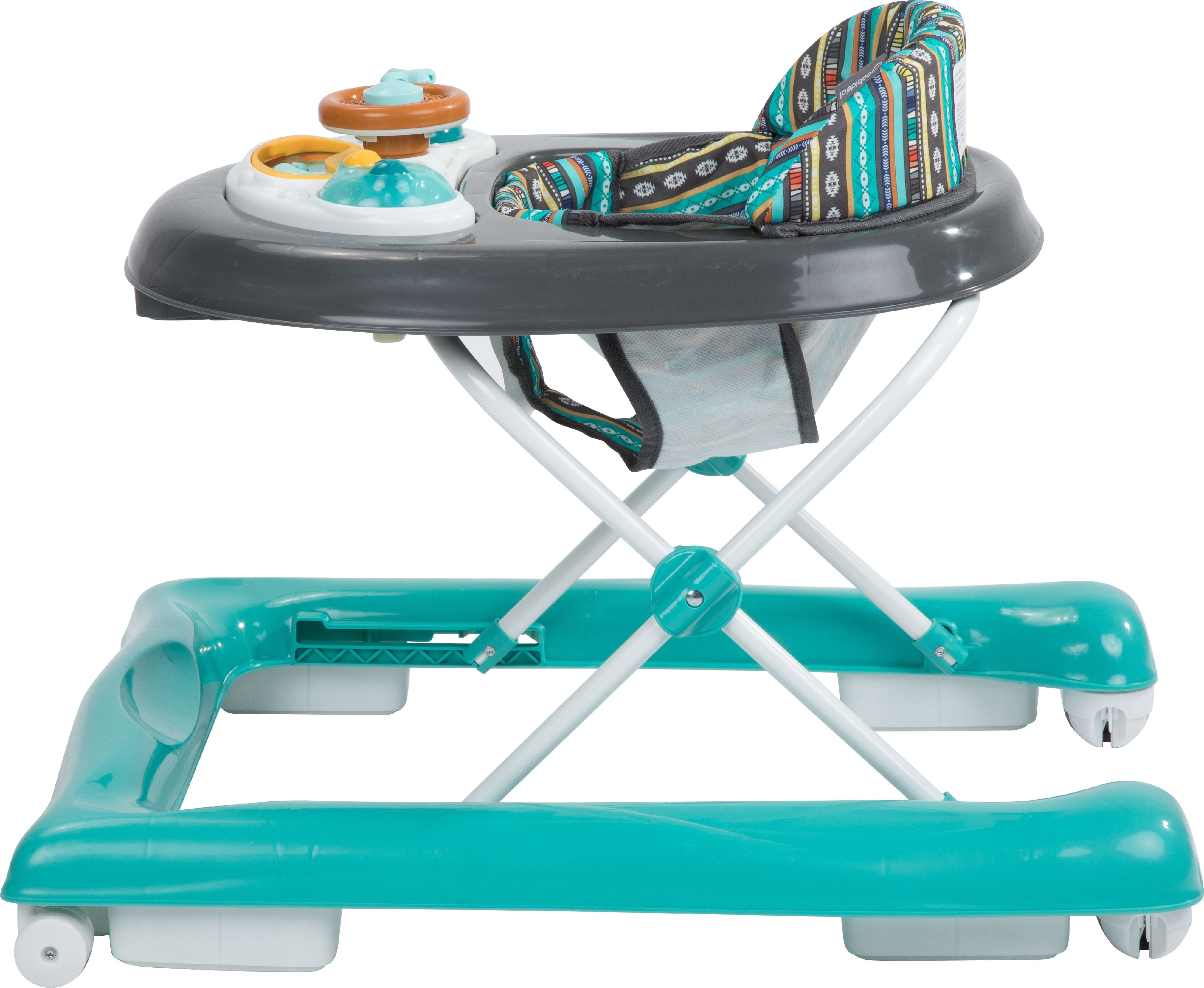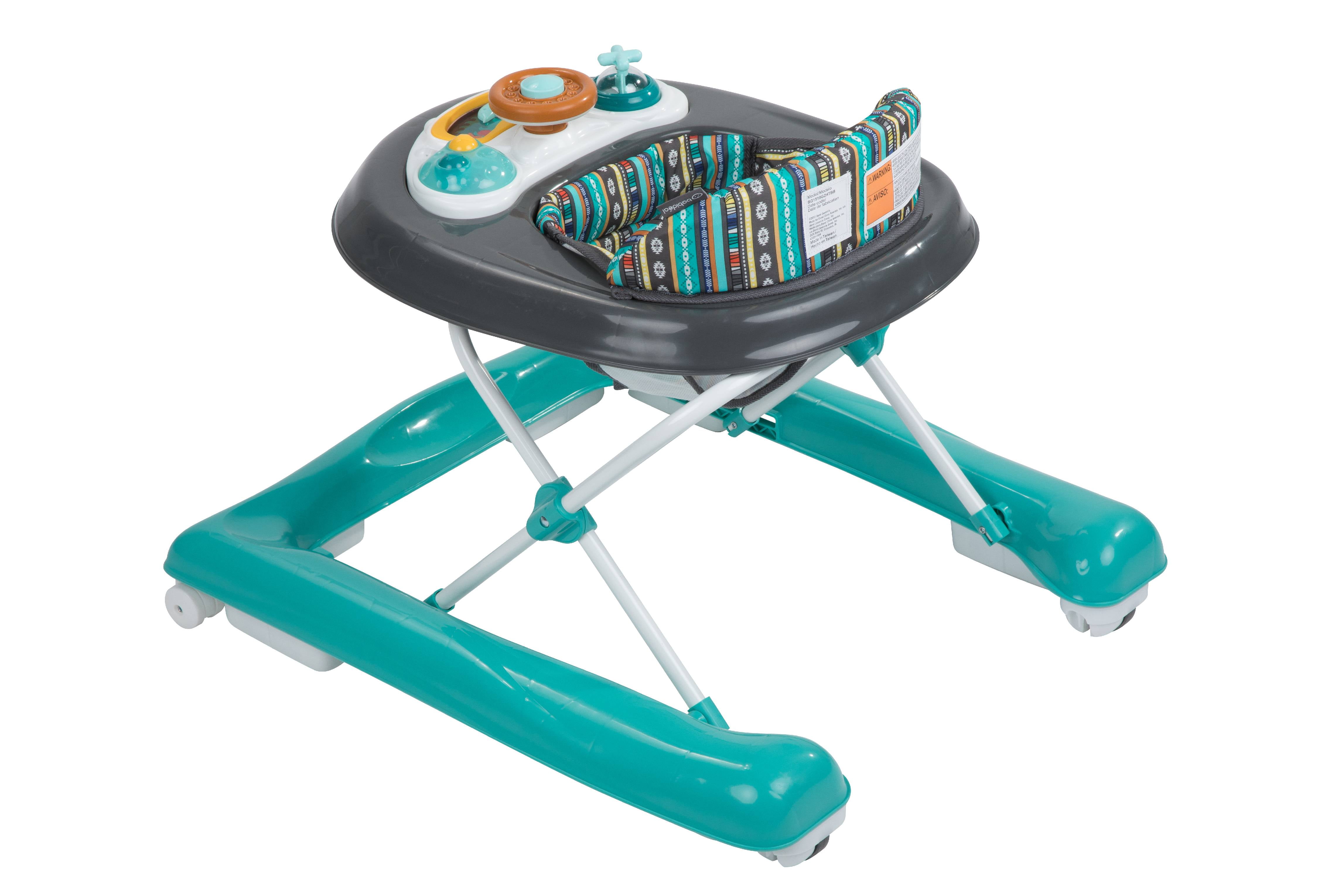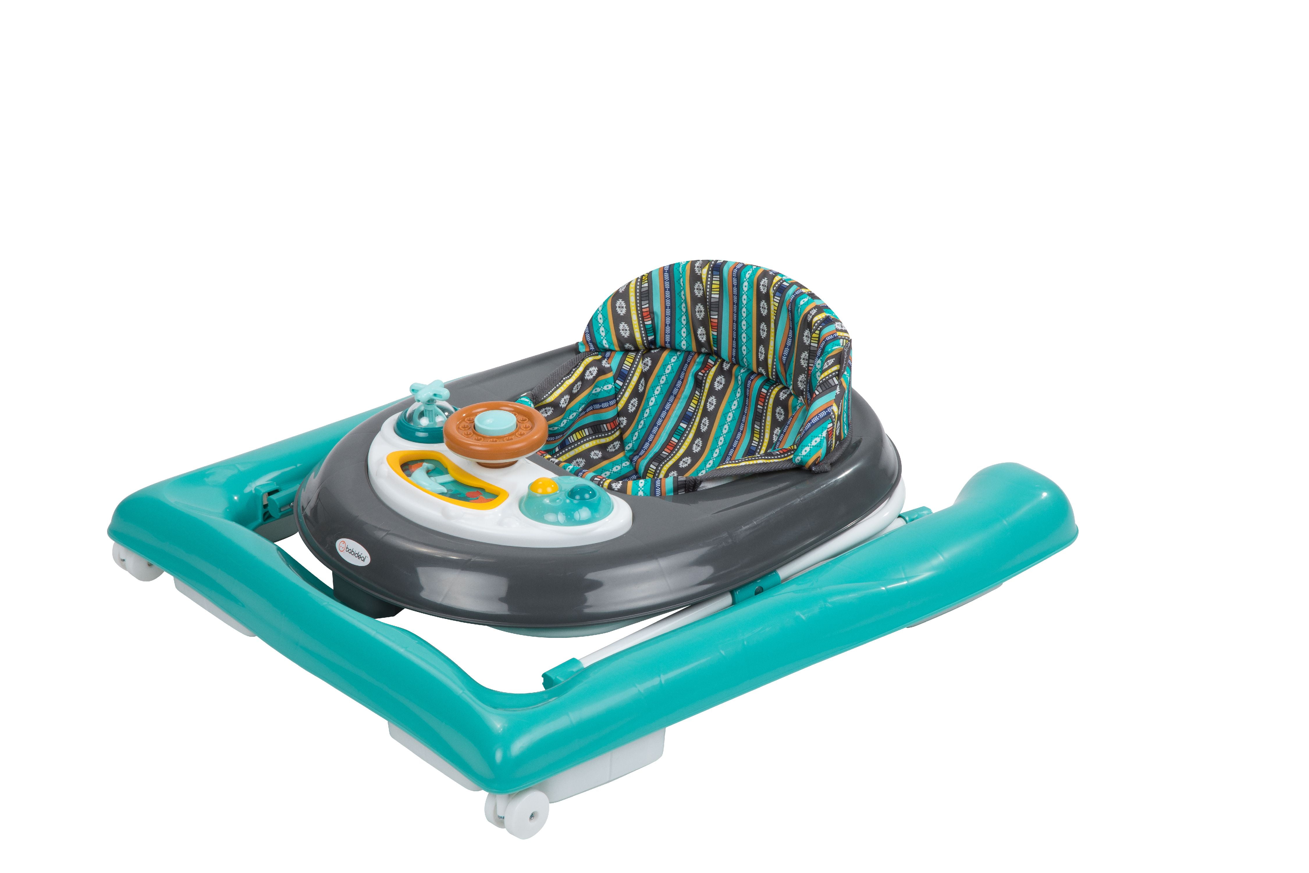 Babideal Rover Activity Walker with Sounds, Teal Boho: 3 position height adjustment 2 in 1 pusher plus walker Accommodates children up to 30 lbs Removable toy tray with interactive toys Buttons of melody and LED light on the toy tray Removable music footboard with 15 melodies and 2 positions Compact fold for travel and storage
