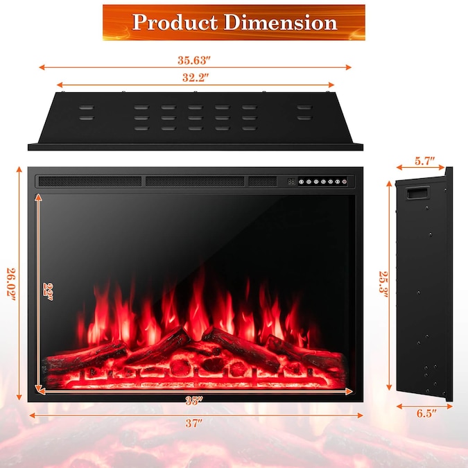 - Do not cover the vents and allow at least 12 inches of space around the electric fireplace.