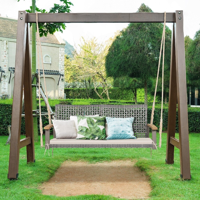 Designed ergonomically with curved seat, backrest and acacia wood armrests, this swing chair will be ultra-comfortable to sit. And 47-in width allows you to enjoy leisure time with your beloved one. The soft seat cushion provides more comfort for you, and its cover is easy to remove thanks to the smooth zipper. The swing chair is also super sturdy, as it’s constructed of reinforced steel and can load up to 8 lbs. The two hanging ropes and screw-in hooks enable you to hang the swing stably. No matter you want to relax in the backyard, front porch or garden, this swing chair will always satisfy your demands.