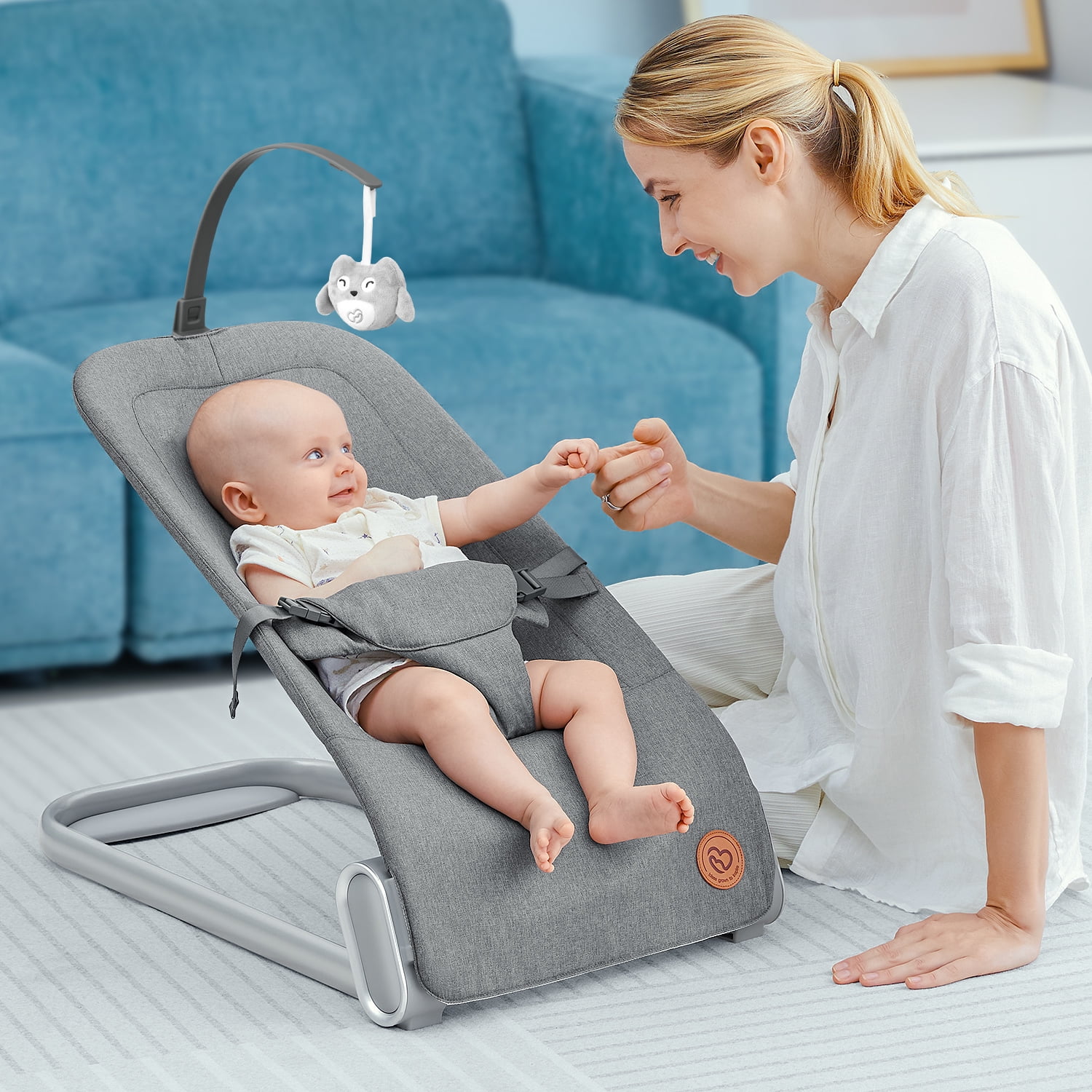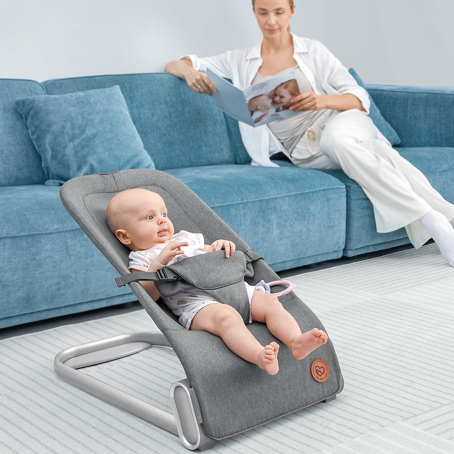 Baby Bouncer Seat for Infants, BabyBond Baby Bouncer with Sturdy Base, Portable Bouncer for Babies with Natural Vibrations (Grey)