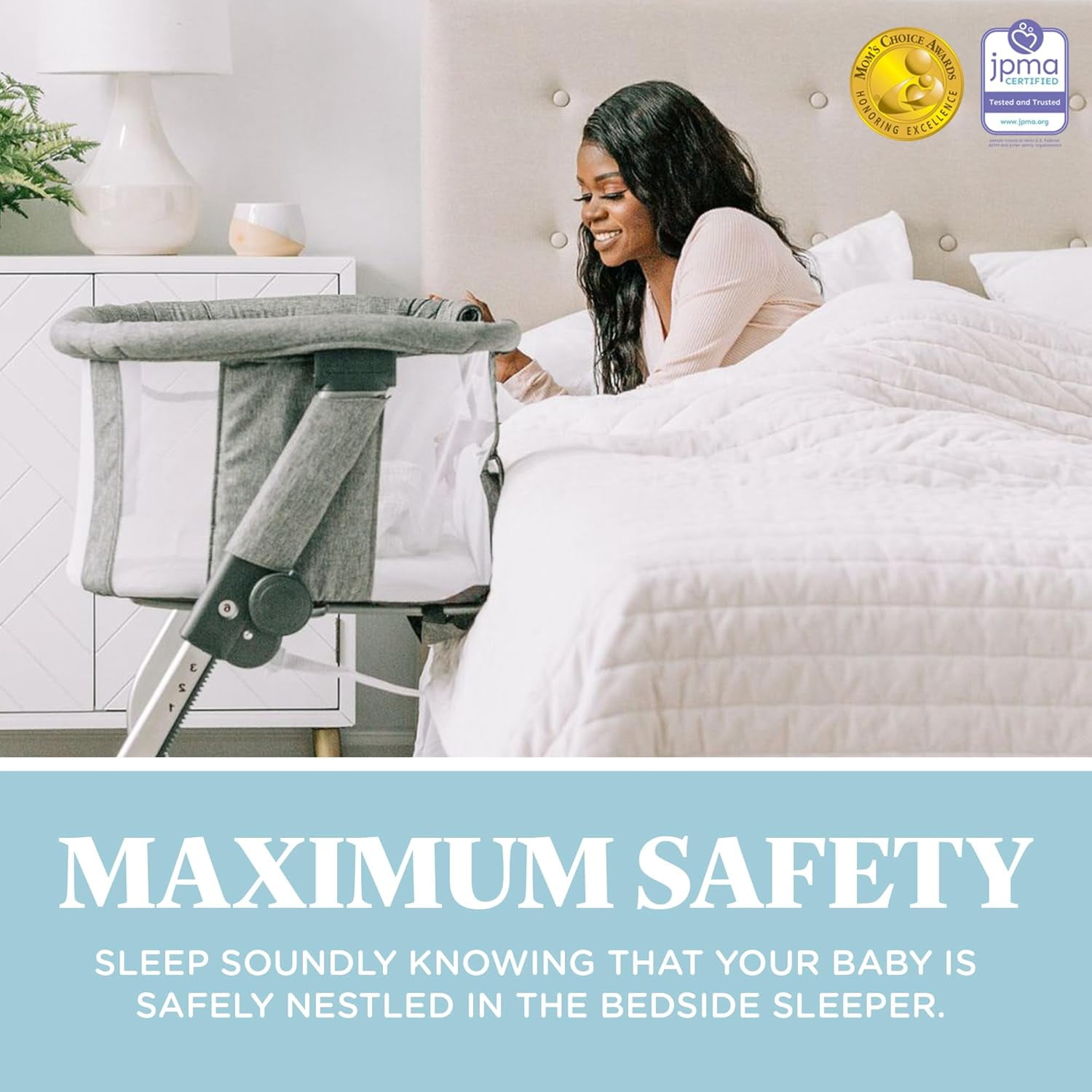 Sleep soundly knowing that your baby is safer and comfortable in the Beside Me Dreamer Bassinet & Bedside Sleeper. In the Bassinet mode, your little one is surrounded by breathable mesh walls that keep air circulating while providing her with her own private sleeping area. It is lightweight enough to move from room to room for convenience. For Bedside Sleeper mode, simply unzip the side panel closest to your bed and snug the Beside Me Dreamer right up to the side. The attached straps safely secure the Bedside Sleeper to your adult bed, ensuring it stays snug and in place. Easily lean over to nurse, comfort or just check on your baby during the night, knowing she is right there beside you. For added comfort, the 6-position height adjustment can be used to adapt the sleeper height to most adult beds. Product Highlights: Breathable mesh sidewalls 6-position height adjustment. Removable and washable cover and sheet Side panel opens for easy access to baby from bed, in sleeper mode East, tool-free assembly Storage pocket Anchors to adult bed for added security in bedside sleeper mode. According to safety guidelines, this product has no incline. Unisex product.