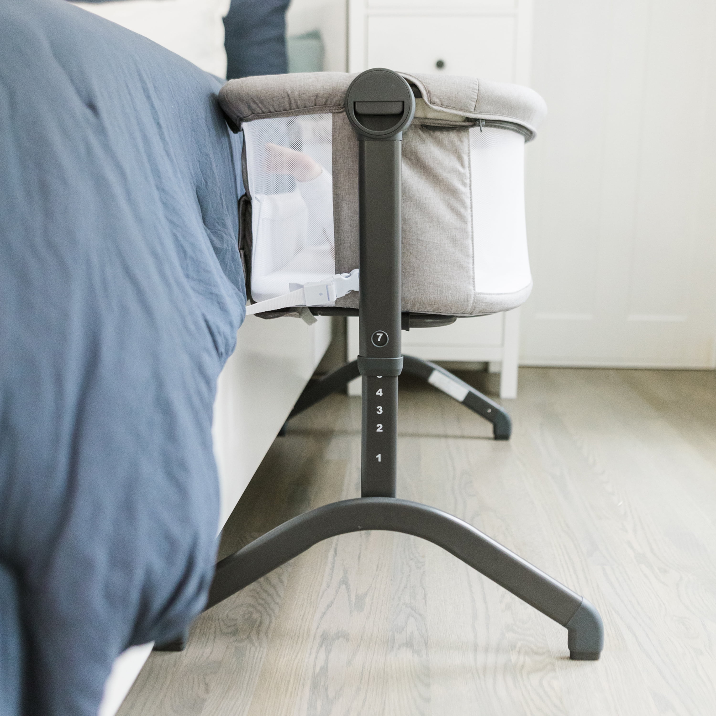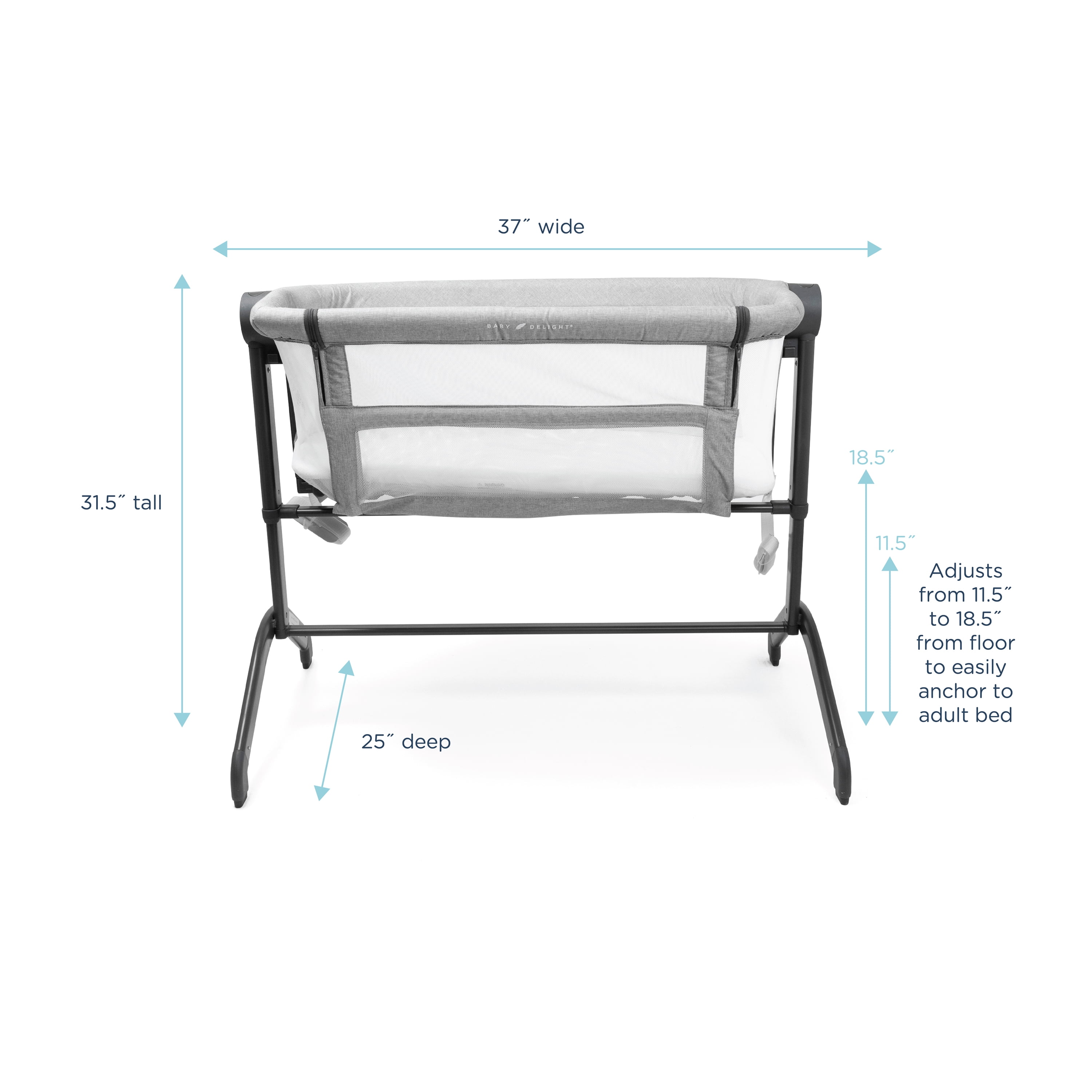 Sleep soundly knowing that your baby is safer and comfortable in the Baby Delight Beside Me Wink Bassinet & Bedside Sleeper in Light Gray Fashion. In the Bassinet mode, your little one is surrounded by breathable mesh walls that keep air circulating while providing her with her own private sleeping area. It is lightweight enough to move from room to room for convenience. For Bedside Sleeper mode, simply unzip the side panel closest to your bed and snug the Beside Me Wink right up to the side. The attached straps safely secure the Bedside Sleeper to your adult bed, ensuring it stays snug and in place. Easily lean over to nurse, comfort or just check on your baby during the night, knowing she is right there beside you. For added comfort, the 7-position height adjustment can be used to adapt the sleeper height to most adult beds. According to safety guidelines, this product has no incline