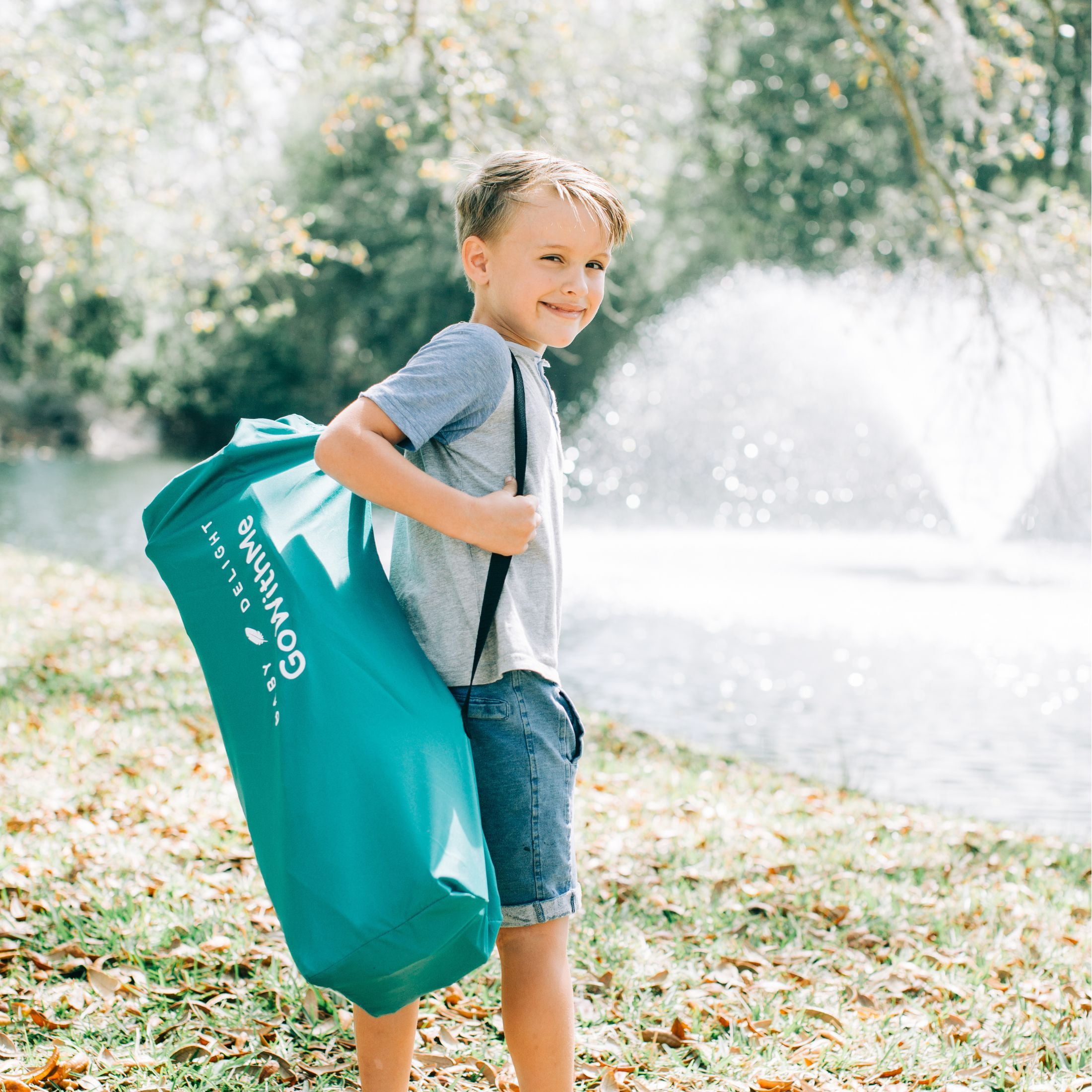 From baby to big kid, travel with ease using the Go With Me Jubilee Portable Chair (Teal). The 5-point harness helps your baby sit upright while remaining secure. The harness is then removable so that toddlers and big-kids can use the chair comfortably. The removable tray features an area big enough for snacks or activities as well as a cup holder that fits most drinks. Indoor/outdoor polyester along with the removable sun canopy makes this chair built to grow and built to go.