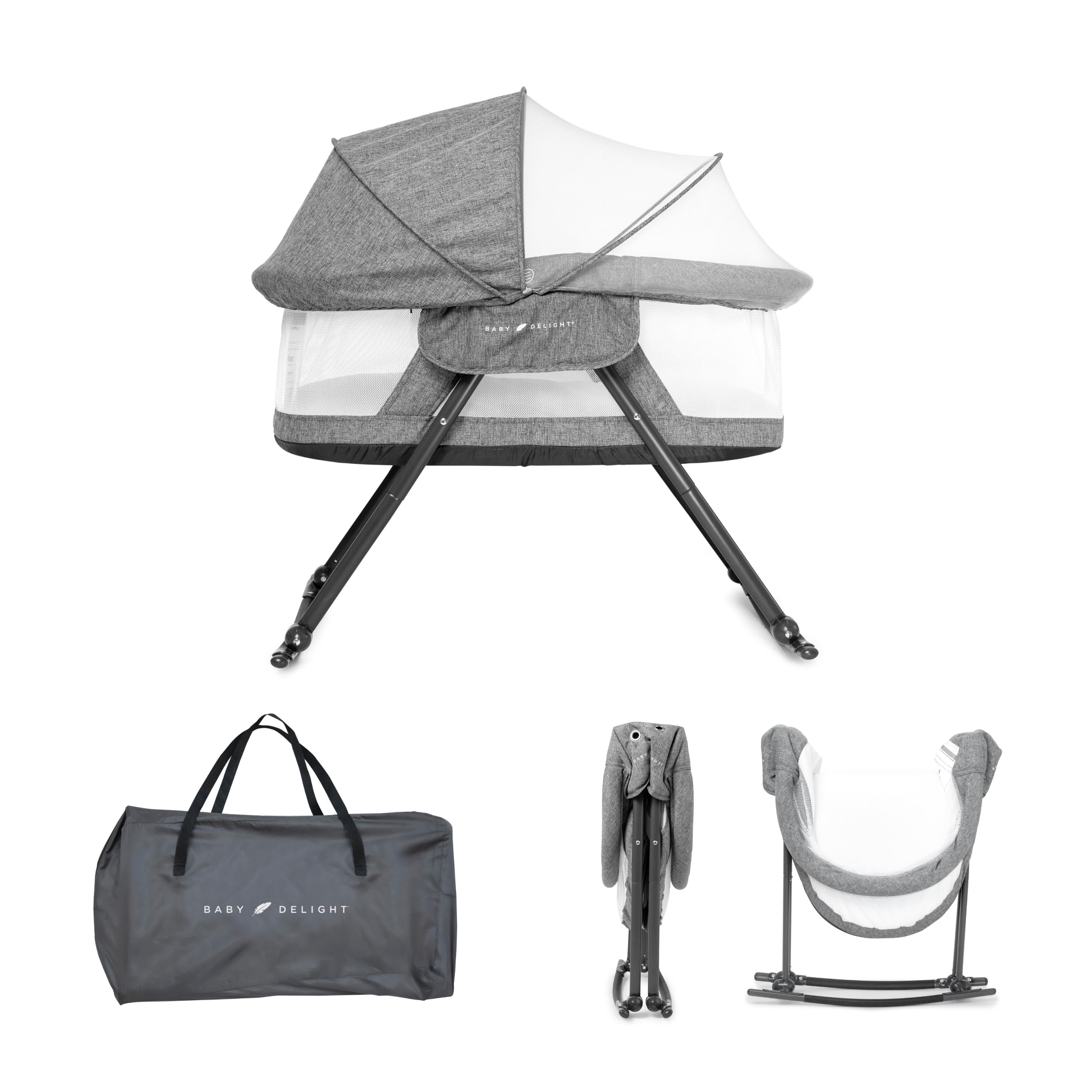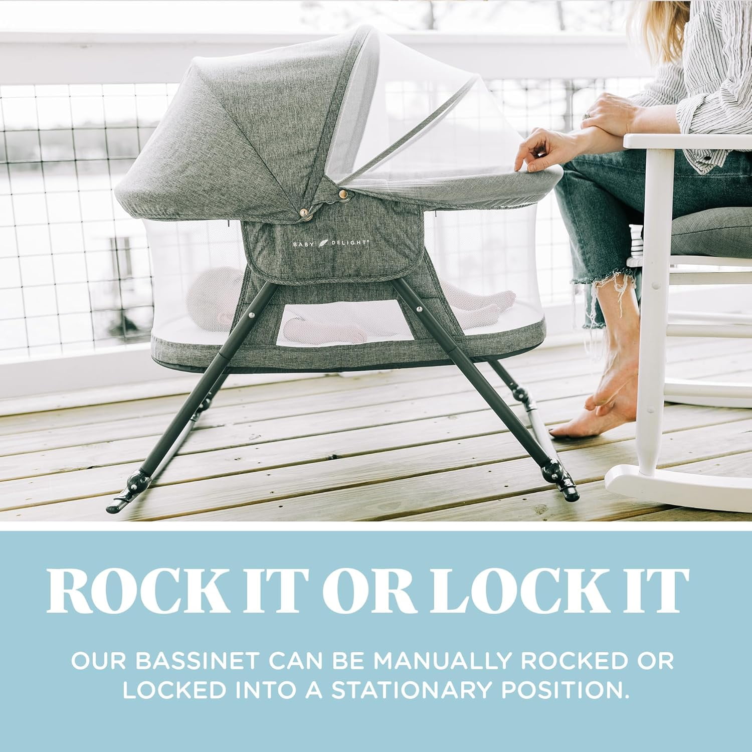 Baby Delight Go with Me Slumber Portable Rocking Infant Bassinet, Removable Canopy, Charcoal Tweed