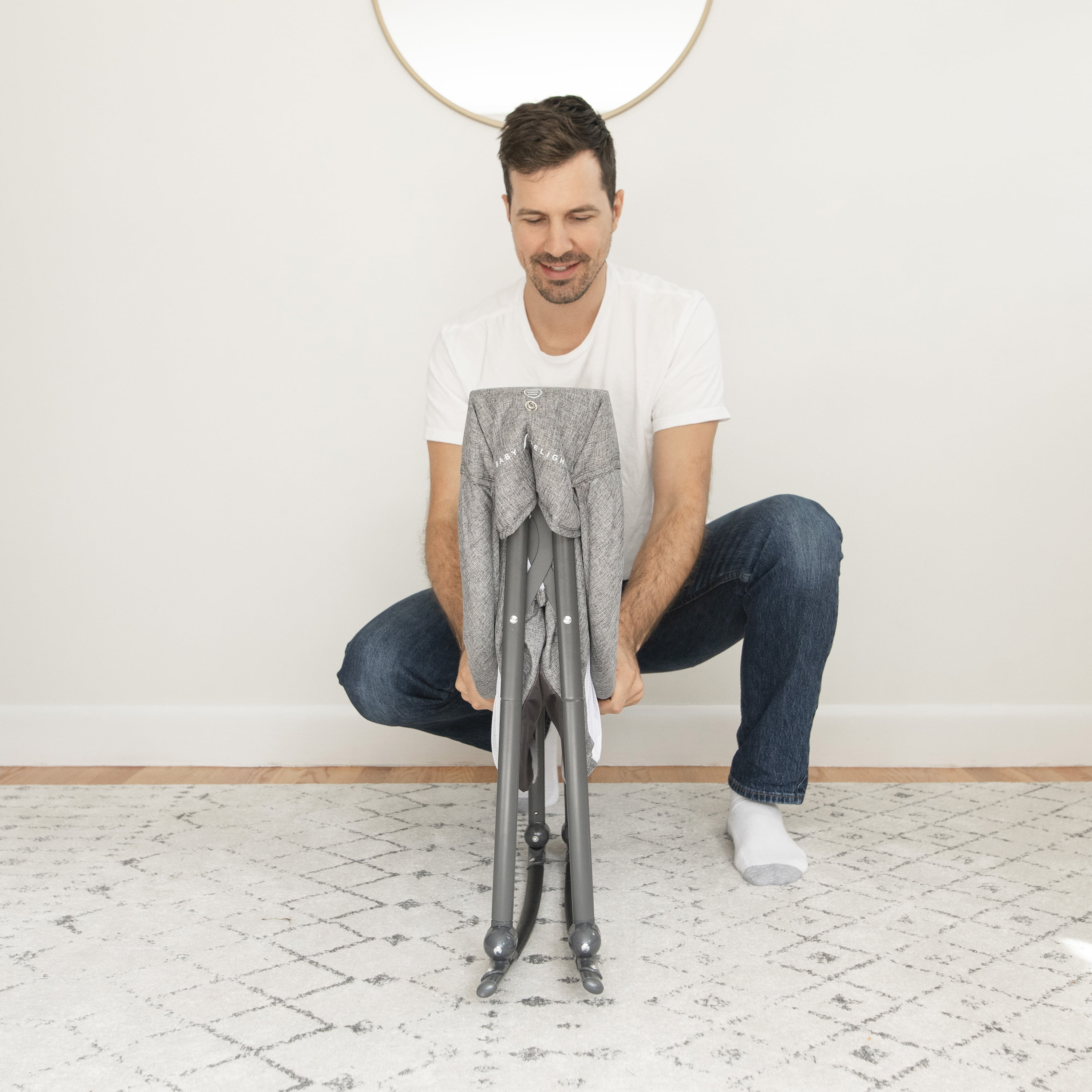 Baby Delight Go With Me Slumber is a rocking infant bassinet designed for portability and for small spaces. The Slumber’s Charcoal Tweed fabric and clean lines make it sleek and modern, while the optional canopy and netting add design features for any situation – both indoors or out. All of our sleep products have mesh walls for visibility and breathability and the Slumber is no different. Depending on your preference, the bassinet can be manually rocked or locked into a stationary position. The entire cover, along with the included sheet are machine washable. The Slumber conveniently folds up in seconds and can be put into the included carry bag for travel or storing. According to safety guidelines, this product has no incline. This item is gray colored and unisex so all infants can enjoy!