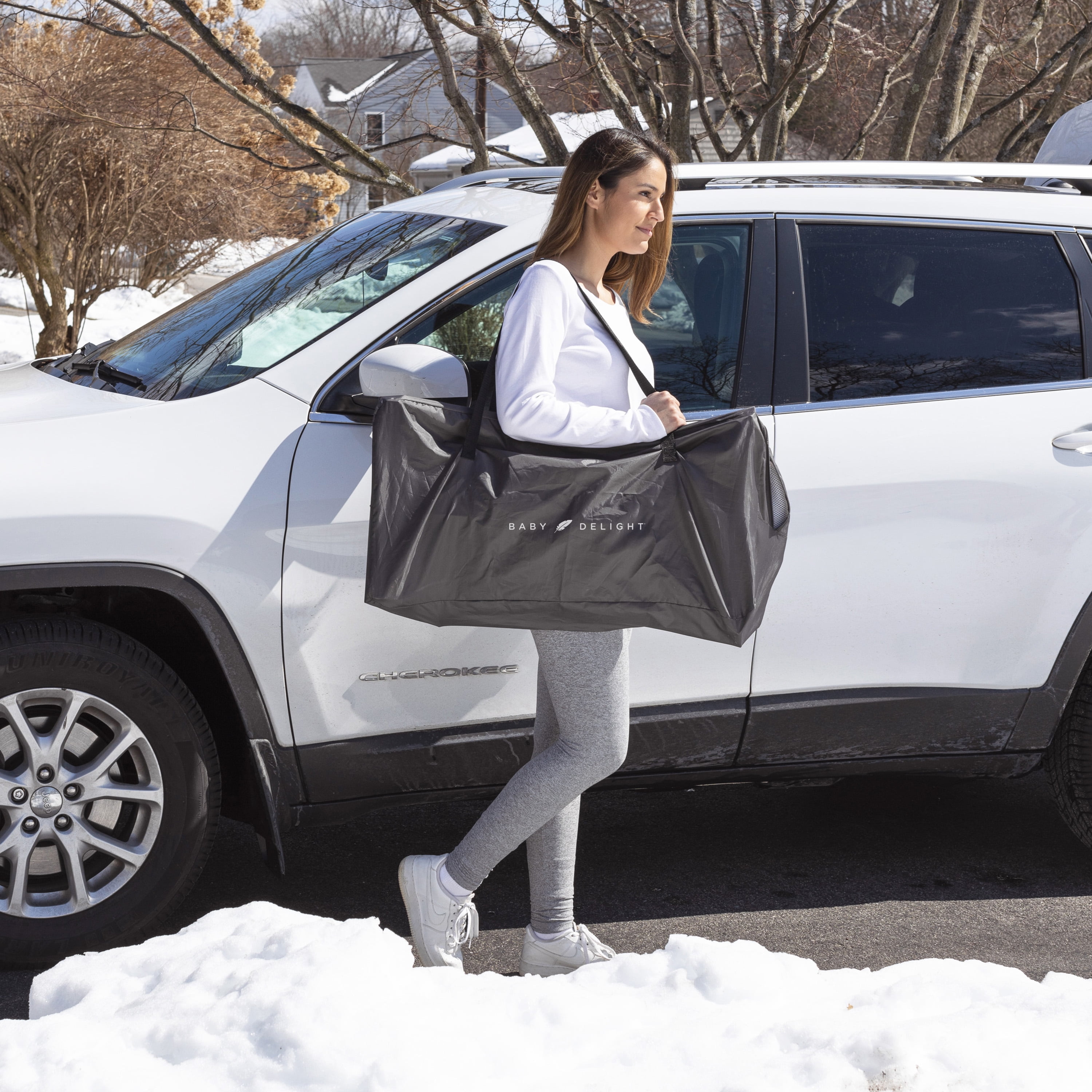 Baby Delight Go with Me Slumber Deluxe Rocking Infant Bassinet, Portable Baby Bassinet, Removable Canopy, Charcoal Tweed (Gray) SLUMBER TIME – Life takes you many different places, so we designed this rocking bassinet fold up and fit into a portable carry bag. We wanted this bassinet to be the perfect option wherever your life takes you. Compactable, portable, and convenient,MAXIMUM SAFETY AND STYLE – JPMA certified and designed with maximum safety. The Slumber’s charcoal tweed fabric makes it sleek and modern, fitting into any home. You shouldn t have to sacrifice style for safety. Recommended age is up to 5 months or 20lbs, ROCK IT OR LOCK IT – Our Bassinet can be manually rocked or locked into a stationary position. Along with the baby rocker, it also comes with an optional canopy and netting to protect your baby The cover and sheet are also removable and machine washable,COMFORTABLE AND COZY – The Slumber was designed with mesh walls to allow increased airflow and breathability According to safety guidelines, this product has no incline. 100% Polyester, Imported Unisex Product