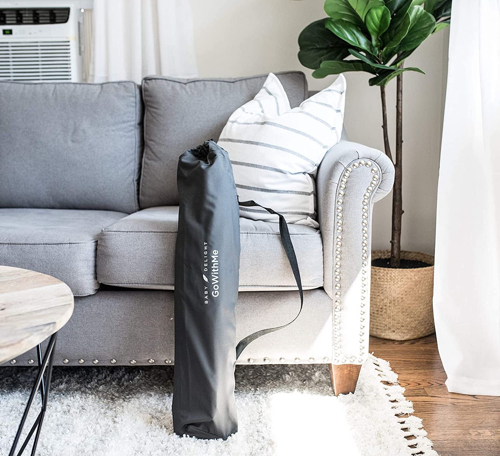 Baby Delight Span, Portable Expandable Folding Fabric Toddler Gate, 36″-60″, Charcoal Tweed SUPER FAST SETUP: Install in 60 seconds or less with no need for tools, hardware, or drilling on your doorframes. Simply remove from the carrying bag, unfold the arms, place in the doorway, and twist out the pressure mounted knobs. YOUR ON-THE-GO SOLUTION: As a parent, we know that life takes you many different places. So we designed this baby gate to be lightweight and easy to fold, fitting snugly into the included carry bag for travel or storage. The gate is perfect for doorways, hallways, and stairs wherever you are. Compact, portable, and convenient. USE FOR VARIOUS OPENINGS: Using the simple knobs on each corner, this expandable baby gate can be expanded to fit almost anywhere. The Span extends from 36”-60” and stands 34” tall. MAXIMUM SAFETY & STYLE: JPMA certified and was designed with maximum safety for the whole family. Our mesh fabric, outlined with charcoal tweed, is meant to fit into any home’s decor. At Baby Delight, we believe that parents shouldn’t have to sacrifice style for safety. Recommended age range is 6-24 months, plus dogs of all ages! GREAT FOR PETS: The Span is also a great pet gate! Includes carry bag for travel or storage