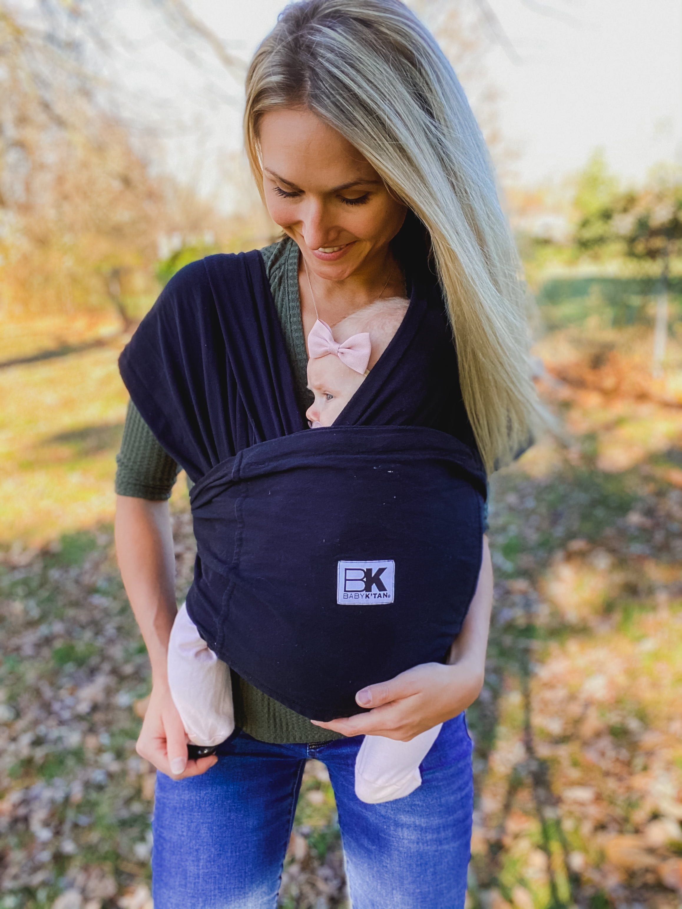 Baby K’tan Original Baby Wrap Carrier, Infant and Child Sling – Pre-Wrapped Holder for Babywearing – No Tying or Rings – Carry Newborn up to 35 lbs, Black (Small), Women 2-4 , Men up to 36