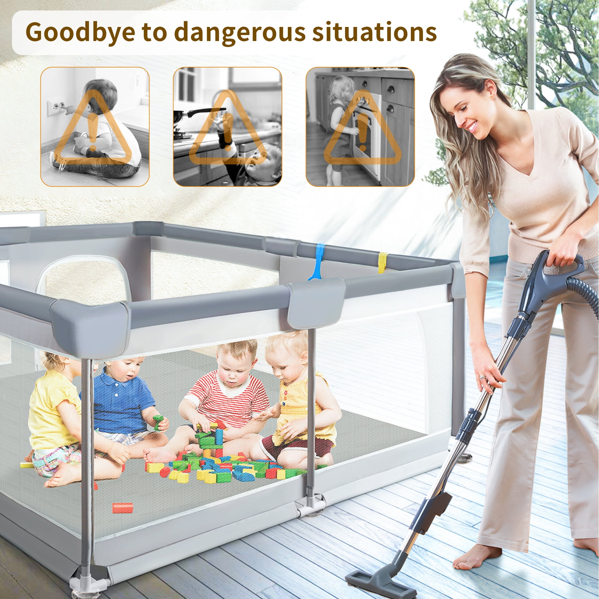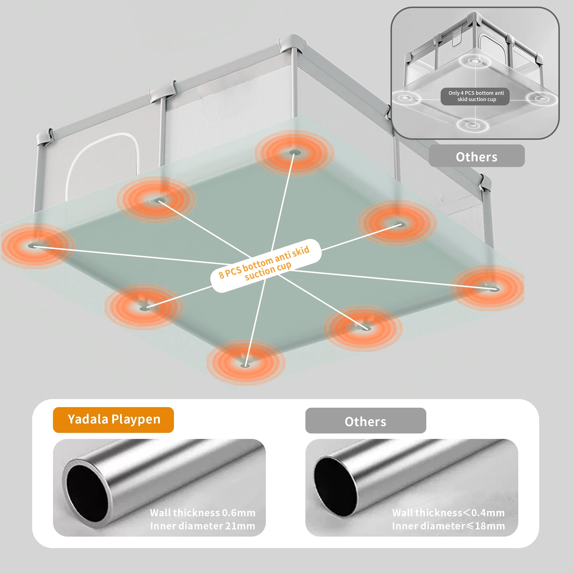 Yadala is a baby brand founded by a designer. Focus on the comfort and safety of babies and toddlers , This play yard with all of the advanced safety design passed the American ASTM safety standard test and CPSC (US Consumer Product Safety Commission) Certificate. Each product undergoes rigorous quality checks to ensure superior quality. This baby playpen creates a safe play area for babies to feel comfortable, while freeing parents’ hands to do their own thing.