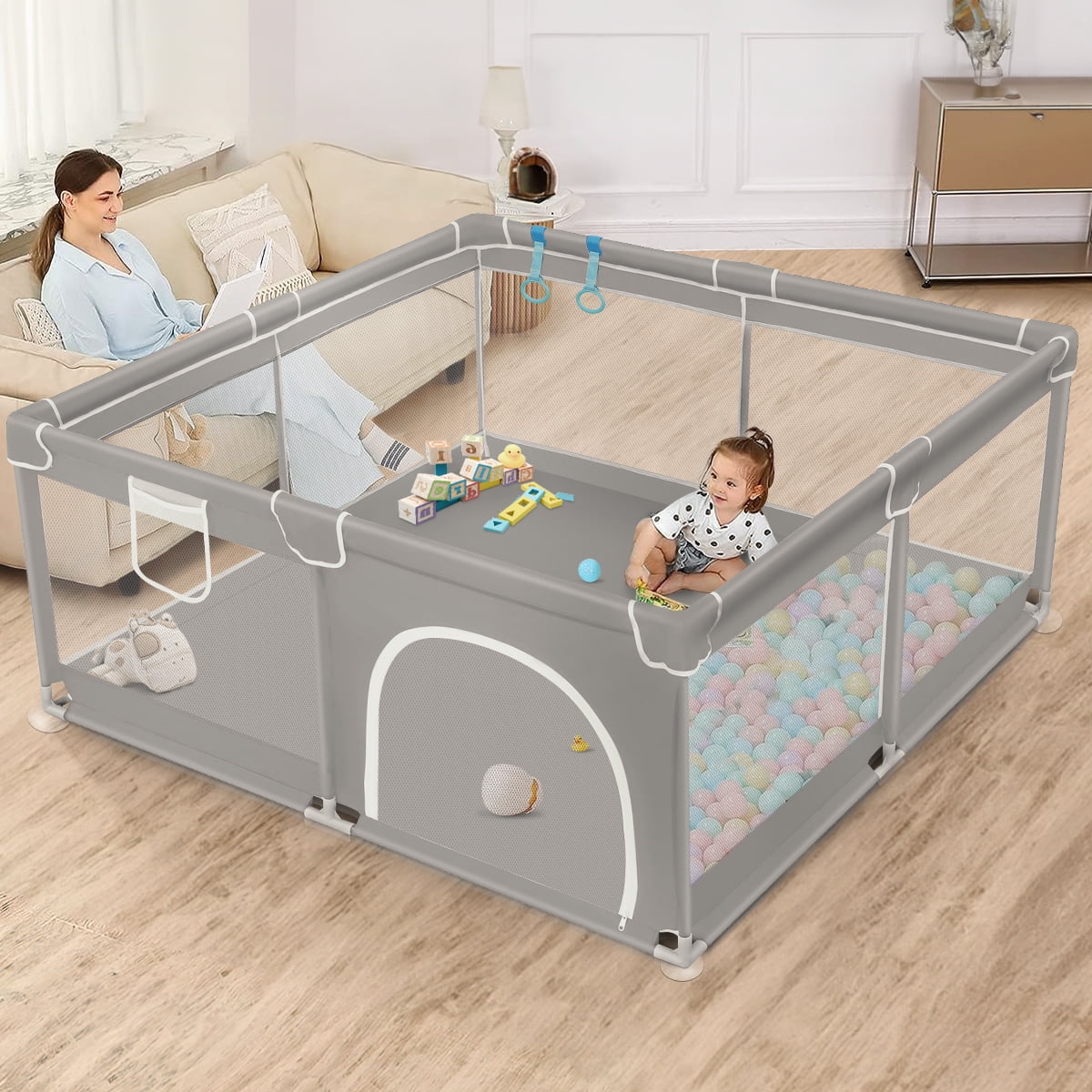 Baby Playpen, HDJ 47 inch Baby Playard with Storage Bag, Portable Baby Fence for Toddler, Kids Activity Center for Travel, Gray