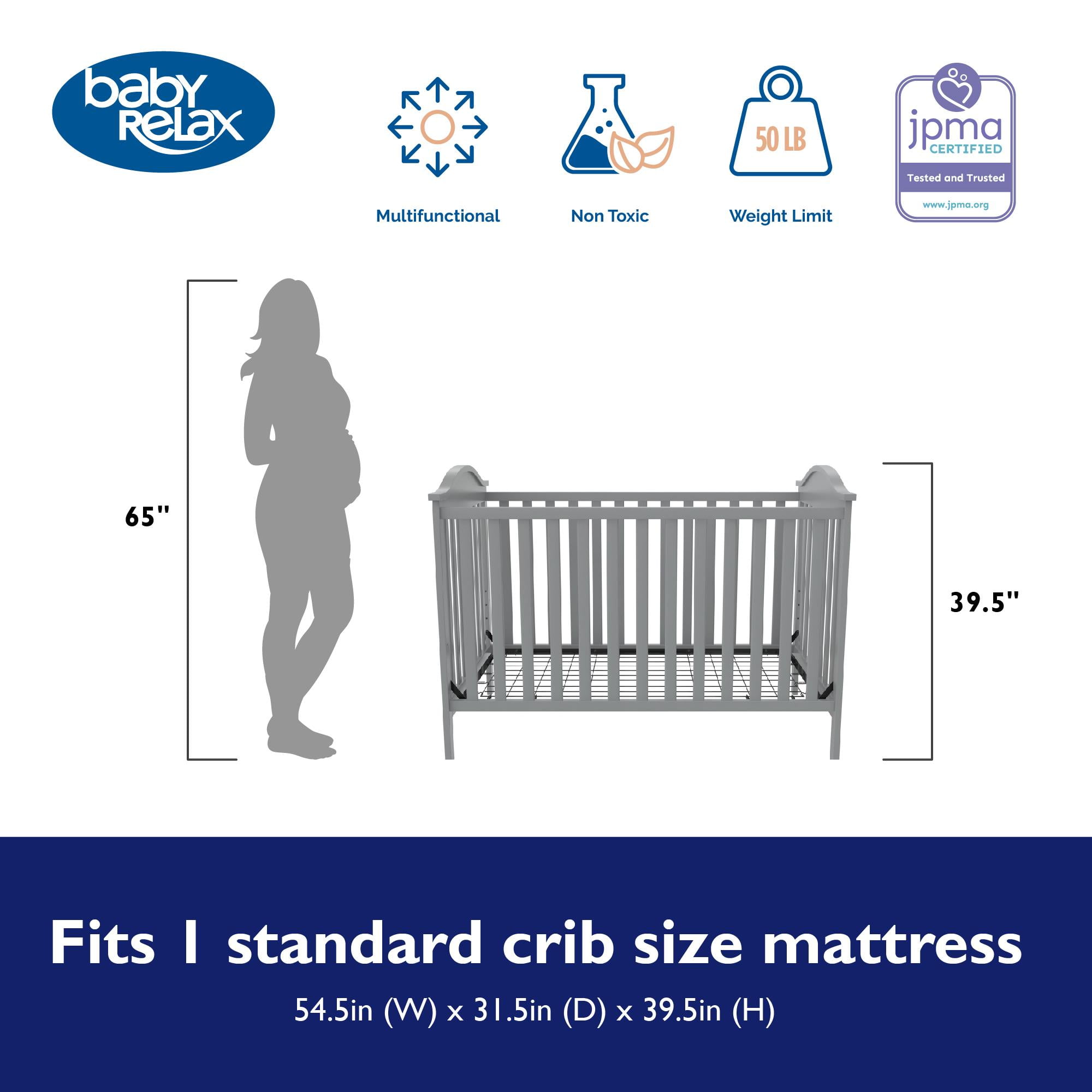 Baby Relax Adele 3-in-1 Convertible Crib, Light Gray