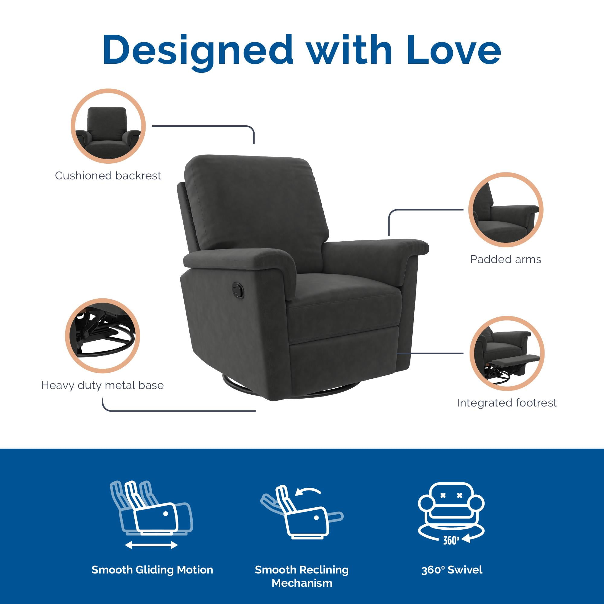 Baby Relax Terrin 3-in-1 Gliding Swivel Nursery Recliner, Distressed Charcoal Microfiber
