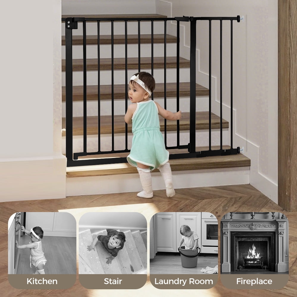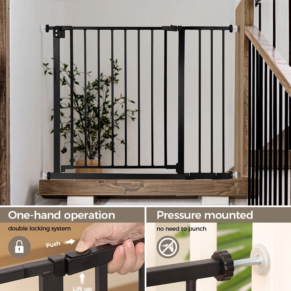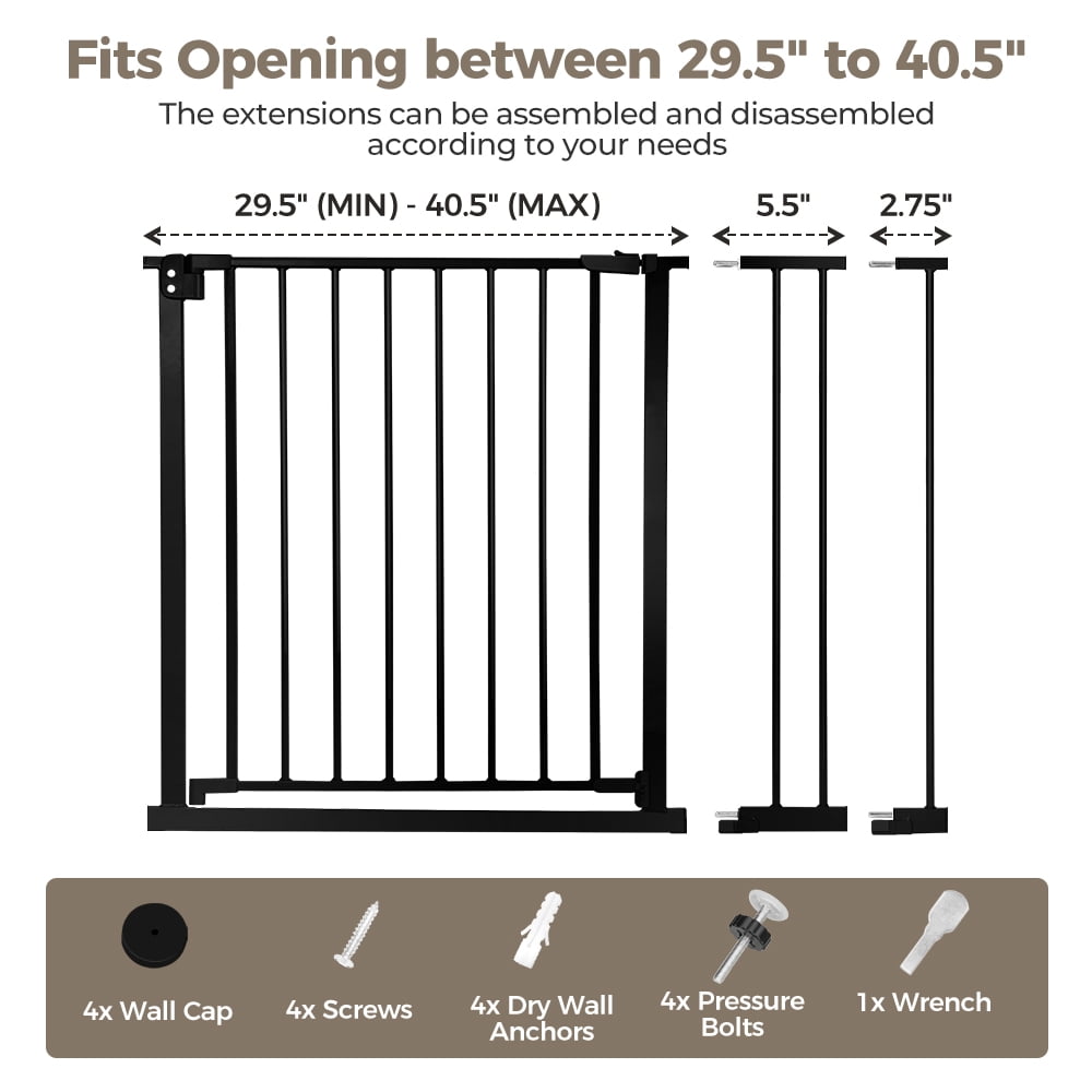 Baby Safety Gate, Baby Gates for Top Stairs Doorway, 29.5”- 40.5”Wide Pressure Mount, Black
