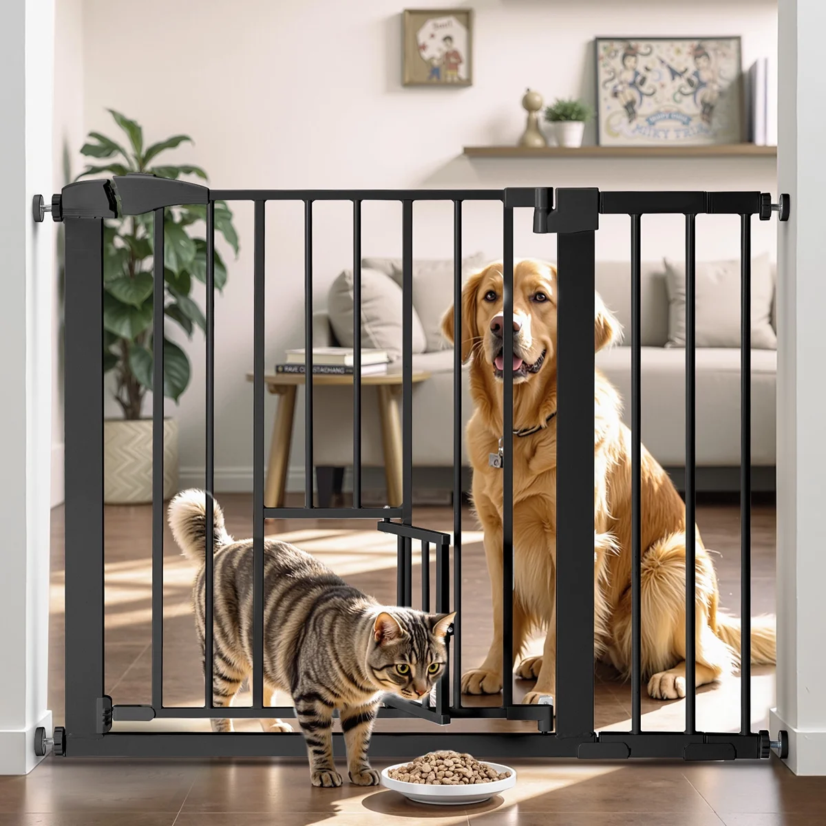 Pet Safety Gate, Caveen 29.5”-40.5”Wide Pet Safety Gate with Cat Door, Black