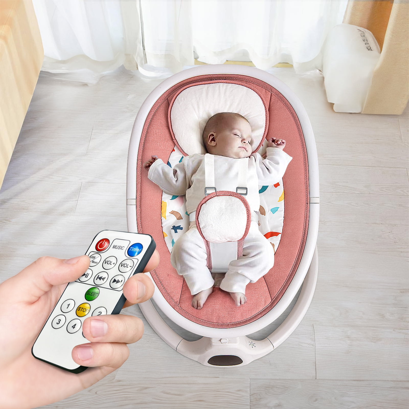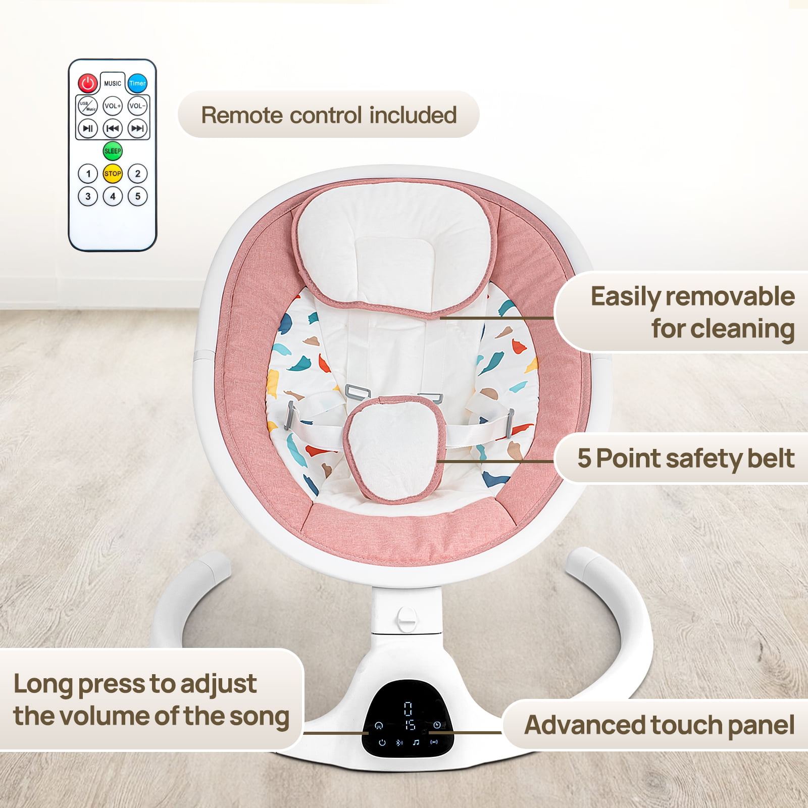 [Simulating the Warmth of Mother’s Embrace]: Our Baby Swing envelops your child in the comforting embrace of a mother. Its upgraded cushion, plush and soft, is a haven of comfort. Crafted from premium, ultra-soft materials, this detachable and easy-to-clean pad simplifies maintenance, making it the perfect baby swing. [Safety First]: The Baby Swing prioritizes your baby’s safety. Its sturdy 5-point harness provides a secure hug, surpassing the protection offered by standard 3-point harnesses. Additionally, a customizable pillow ensures your baby’s safety and comfort, snugly packaged for infants aged 0-9 months, making it an ideal baby swing. [Enhanced Safety Features]: With the Dino Baby Swing, your child’s safety comes first. Its secure 5-point harness sets a higher safety standard compared to the usual 3-point harness. Moreover, the adjustable pillow design ensures your baby rests securely and comfortably in the cradle, making it an excellent choice for a baby swing. [Multi-functional Portable Design]: Suitable for use anywhere, the Dino Baby Swing shines indoors and outdoors alike. It’s a portable baby swing, easy to dismantle and carry, neatly fitting into a compact package measuring 20.67 x 6.3 x 16.93 inches. An additional peace of mind comes with a protective mosquito net, making it suitable for baby girls or boys. With the Dino Baby Swing, you get a compact electric baby swing perfect for newborns. [Easy Operation]: Simplicity is key with the Dino Baby Swing, featuring state-of-the-art touch panels and a remote control. Choose from 3 timer options: 8 minutes, 15 minutes, or 30 minutes for a customized experience. Additionally, 3 charming plush toys keep your baby entertained. This electric baby swing is perfect for indoor use, providing a cozy and safe space for your newborn. [Reliable After-sales Support]: We take pride in standing behind the Dino Baby Swing with dedicated after-sales service. If you encounter any issues or have questions, our responsive and friendly customer service team is here to help.