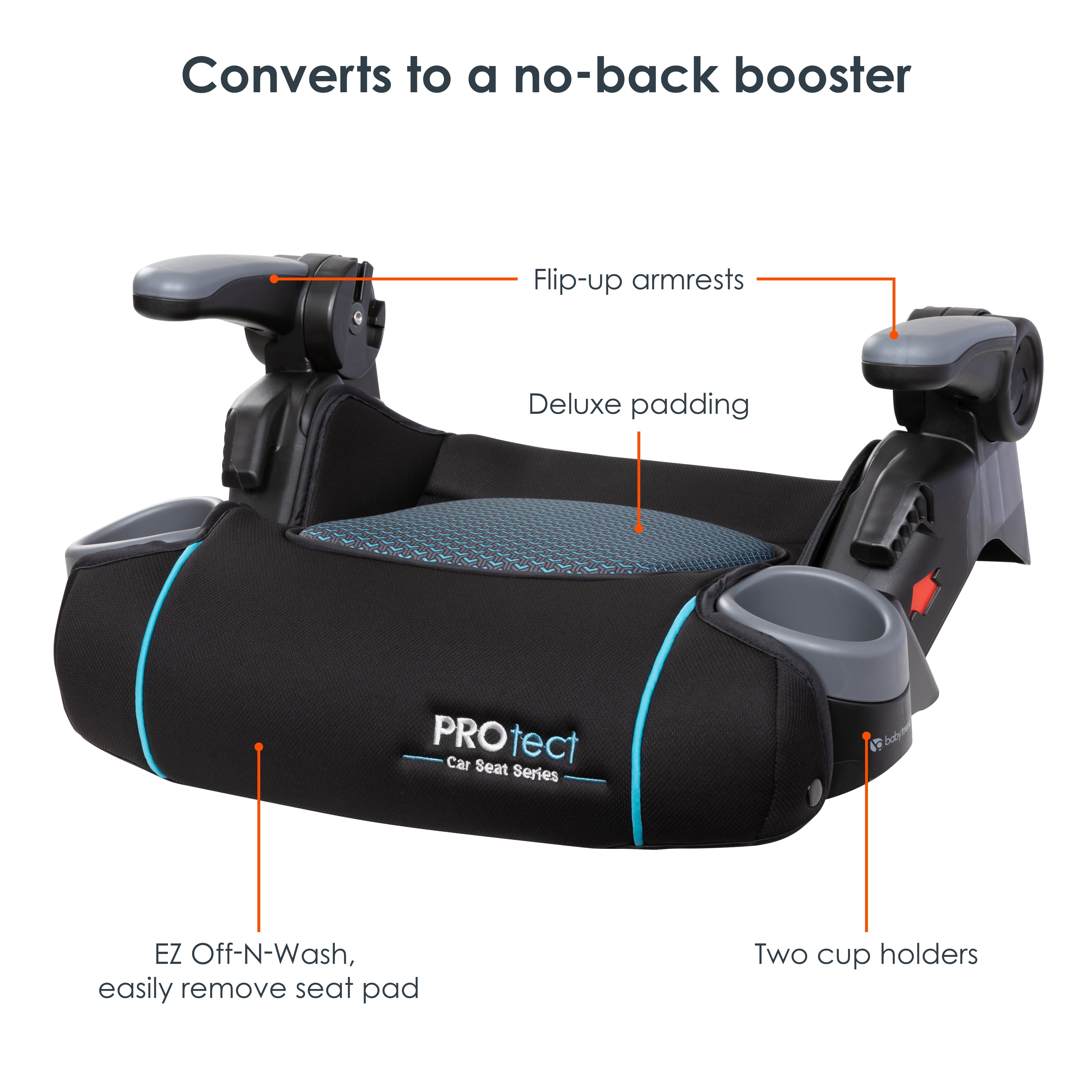 8-position height adjustment headrest Deep contoured energy absorbing headrest Patented side impact head protection – tested to the strictest International Standards 3-positon shoulder belt adjustment Real Sizing ensures your child will be safe, comfortable, and happy much longer Two cup holders & flip-up armrests EZ Off-N-Wash allows parents to simply remove the seat pads from the booster Folds for easy transport and storage