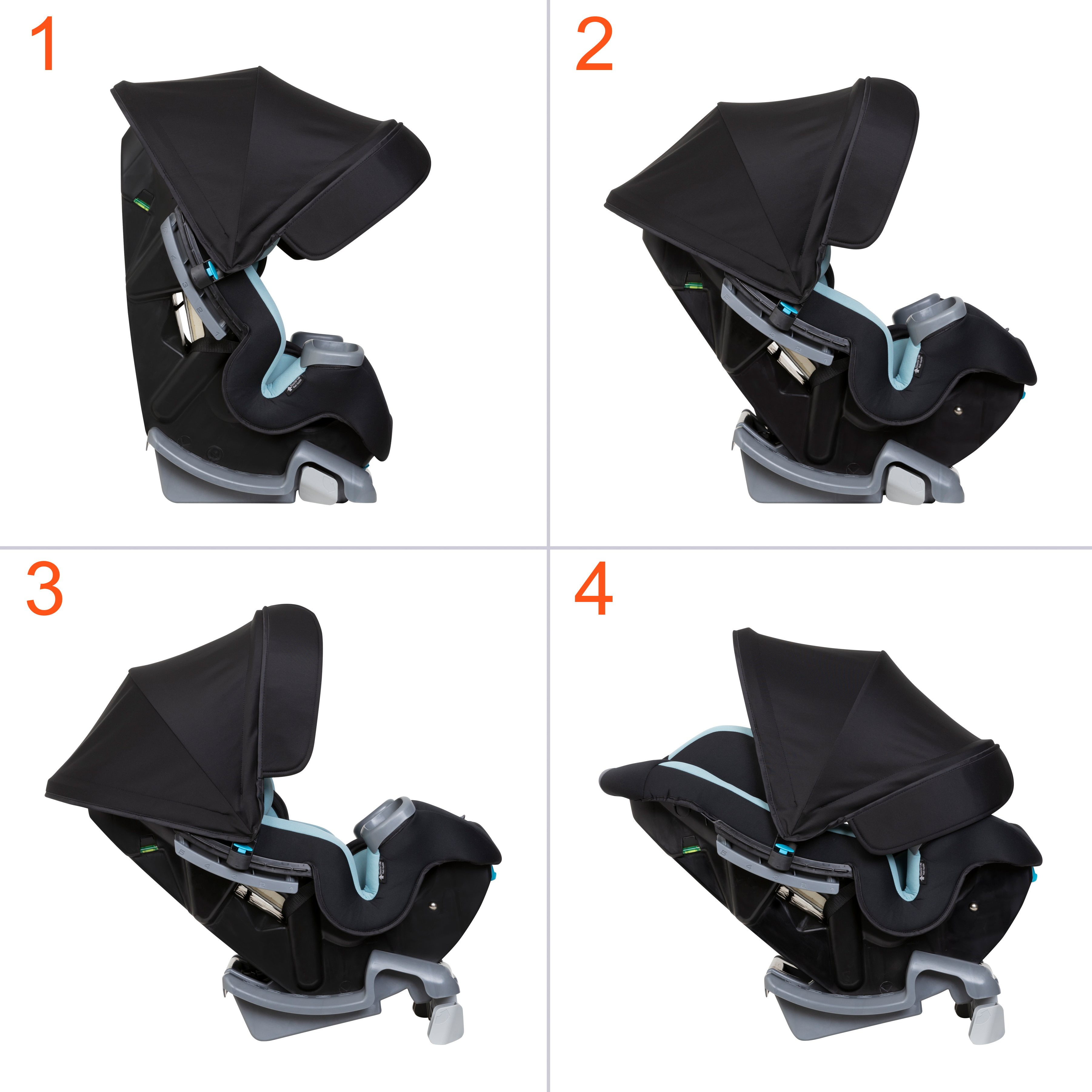 Integrated Adjustable Canopy for UV Protection: Integrated height and angle adjustable canopy for in-car UV protection. Flip-out side visors provide additional shade protection for either side of the car seat. 4-in-1 Seating System: Built for extended use including 1) Rear Facing Infant mode from 4 to 18lb 2) Rear Facing Toddler mode from 18 to 40lb 3) Forward Facing with Harness mode from 22 to 65 lb 4) Belt Positioning Booster mode from 40 to 100lb Comfort & Convenience for Kiddos: Child can quickly adjust the canopy when car is in motion and sun is coming from multiple directions. The Cover Me’s exclusive Comfort Cabin offers extra padding to keep child comfortable on long rides. Easy To Use, Recline Ready: Includes an integrated headrest with no rethread harness. The base has a zero recline radius that adjusts to three positions and allows front seat passengers to have extra legroom, while an integrated recline flip foot offers dual adjustment and gives the right angle with ease. There are also two front facing recline positions.