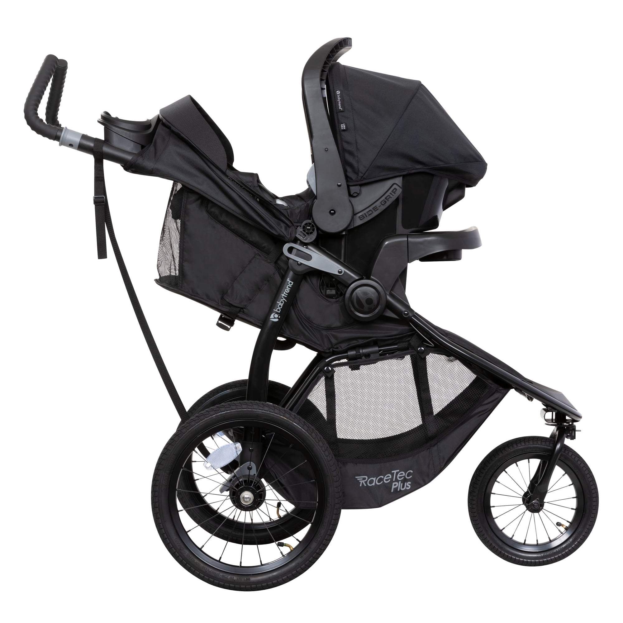 The Expedition Race Tec PLUS Jogger offers a premium and personalized jogging experience for all consumers at different heights and jogging satisfaction. With the innovative and unprecedented 4-position Rotational Angled Rubber Flex-grip Handles combined with Height Adjustability, our Expedition Race Tec PLUS Jogger offers parents to personalize their own jogging experience in different levels of comfort when experiencing different fields, turns, inclined roads, and surfaces.Designed with jogging parents’ comfort and convenience in mind, Baby Trend makes each position easy to adjust with just buttons and latches so parents are able to adjust on the run with our jogger! Combined with other valuable features such as the cell phone positioner and the extra-large opening basket, moms and dads are taken care of within reach! Baby’s seat is equipped with the exclusive Comfort Cabin which is a multi-layered compression padded seat wrapped with premium fabrics along with the UPF 50+ Canopy.The Baby Trend EZ-Lift™ 35 PLUS Infant Car Seat provides parents with an easier way to LIFT and GRIP their infant car seat. Weighing at less than 8 lb, the EZ-Lift™ 35 PLUS allows parents to carry their infant car seat in a way that lessons the strain on their backs. This lifting technique has even been recommended by chiropractors as an ergonomically friendly method for carrying. The EZ-Lift™ also includes a multi-position base with level indicator as well as No-Twist Harness Indicator that allows parents to quickly see when the straps of the car seat are twisted. Safety-wise, the carrying handle of the EZ-Lift™ 35 PLUS acts as an anti-rebound bar when it is placed in forward position. Like all Baby Trend car seats, the EZ-Lift™ 35 PLUS Infant Car Seat meets and exceeds all federal safety standards.