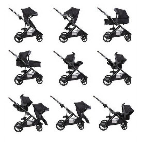 A versatile Single-to-Double Modular Stroller Travel system with multiple Forward and Rear facing configurations for a personalized strolling experience! Over 25 unique riding modes! The stroller frame includes a built-in standing board and seat bench, allowing two children to ride at the same time Includes a modular stroller seat that easily converts to a bassinet for a restful and comfortable option for baby The footrest on the stroller seat adjusts for your growing child to ensure extended use Integrated adapters allow the Morph to easily convert to a double stroller with many riding possibilities for your growing family The handlebar is height adjustable for a comfortable strolling experience The parent tray includes a cup holder and cell phone holder for hands free access to your on-the-go essentials The extra-large storage basket allows for easy accessibility to your strolling necessities This travel system includes the lightweight EZ-Lift 35 PLUS Infant Car Seat that weighs 7.5lbs The car seat includes an innovative Side Grip carry handle for ergonomic lifting and carrying The handle bar of the EZ-Lift can be used as an anti-rebound bar in forward position, which helps prevent rotation in the event of a rear collision for added safety and stability The car seat includes a base with recline flip foot and a bubble level indicator for the perfect angle The car seat is certified for air travel and meets and exceeds federal safety standards Second Stroller Seat and Modular Storage Basket available as accessories
