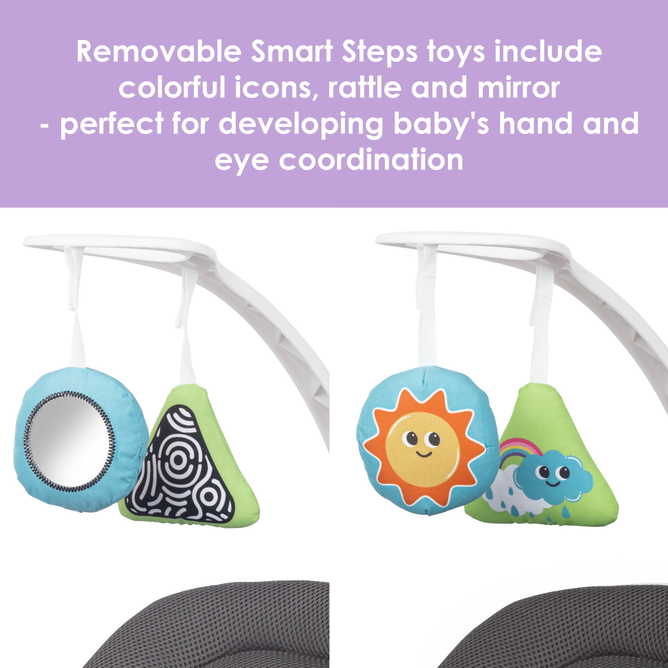 Welcome your little one into the world with our NuMotion Infinity Swing with Interactive Display! Featuring five motion modes, this swing is designed to simulate real-life experiences. From the free movement in the womb to gentle parental holding, from rocking motions to circled trajectories, it will help your baby adapt to their surroundings with comfort and ease. With a touchscreen or remote control, you can adjust all swing settings from nearby with a simple button press. The swing also includes a multi-recline seat for comfort and two Smart Step hanging toys designed to develop motion skills. A perfect blend of function and fashion, the NuMotion Infinity Swing ensures a smoother day for both you and your little one.