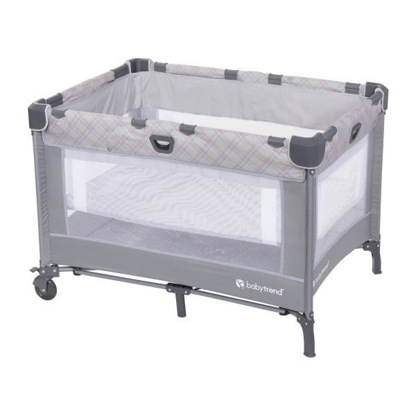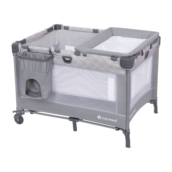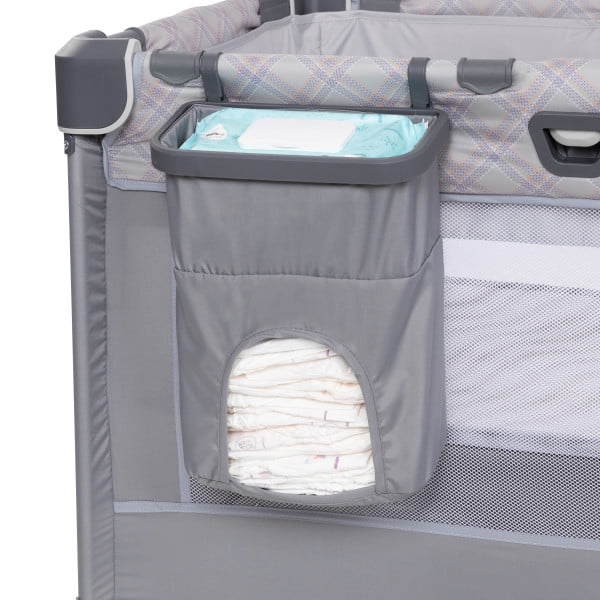 Baby Trend Nursery Den Playard with Dome Napper, Changing Table & Diaper Stacker in Madrid Plaid