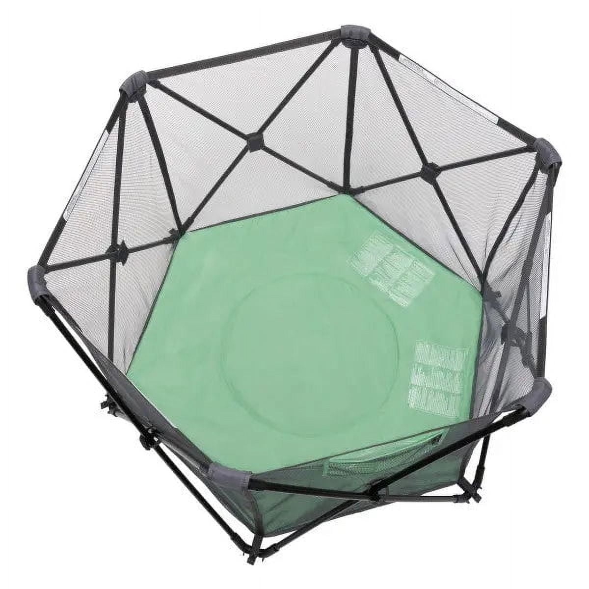 Hexagon playard is versatile and can be used indoors or outdoors. Spacious play area, measures 48” x 41” x 29.5”. Lightweight and portable, the perfect option for family fun! Convenient carry bag allows it to be taken on the go. Water resistant fabric. Can also be used for pets.