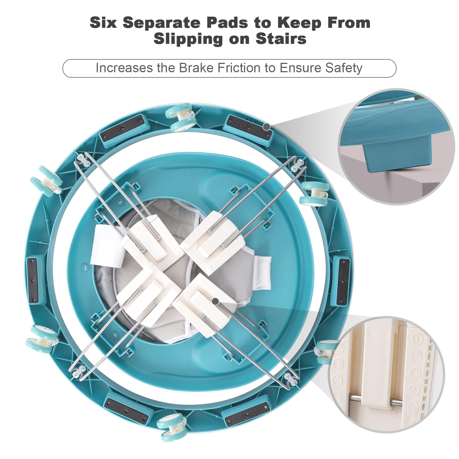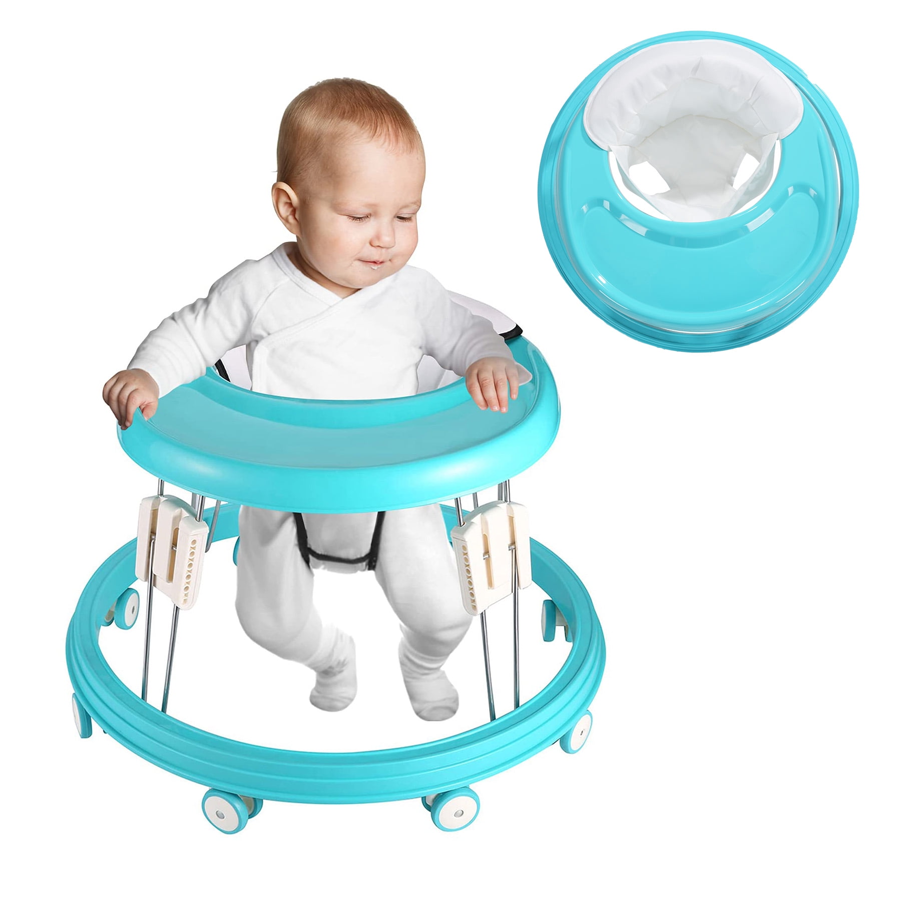 PREMIUM MATERIAL: Eco-friendly original raw material PP plastic, high quality PU cushion, Baby mobile dining table with safer and stronger, Non-toxic and easy for baby to eat sitting in a walker. Breathable & wearable cushion, Comfortable to Baby. ADJUSTABLE HEIGHT:5 walker heights,Height range with wheels,after adjustment: 24.2″-25.8″. Suitable for Baby of Different Heights. Grows with your baby to ensure your child’s safety in use, This walker is suitable for baby toddlers aged 6-18 months.baby maximum Load 20 kg. EASY FOLD&UNFOLï¼The baby Walker can be folded down and fold flat, Installation Free. It is a small size and easy to carry and store. Round design with 8 universal wheels work on floors or carpets for easy moving. 4 strong stainless steel legs. Bring full convenience to your life. FOLDED SIZE: 25.4*24.2*3.93inch,The diameter of the chassis is 23.6″,Before buying, please make sure your baby is tall enough to use a walker. NOTE: Please make sure that your baby is used with the company of his family,and Use on smooth ground.We have stocks in California and New Jersey. If you choose to buy a Langyi mobility aid, we will deliver it in about 10 working days.