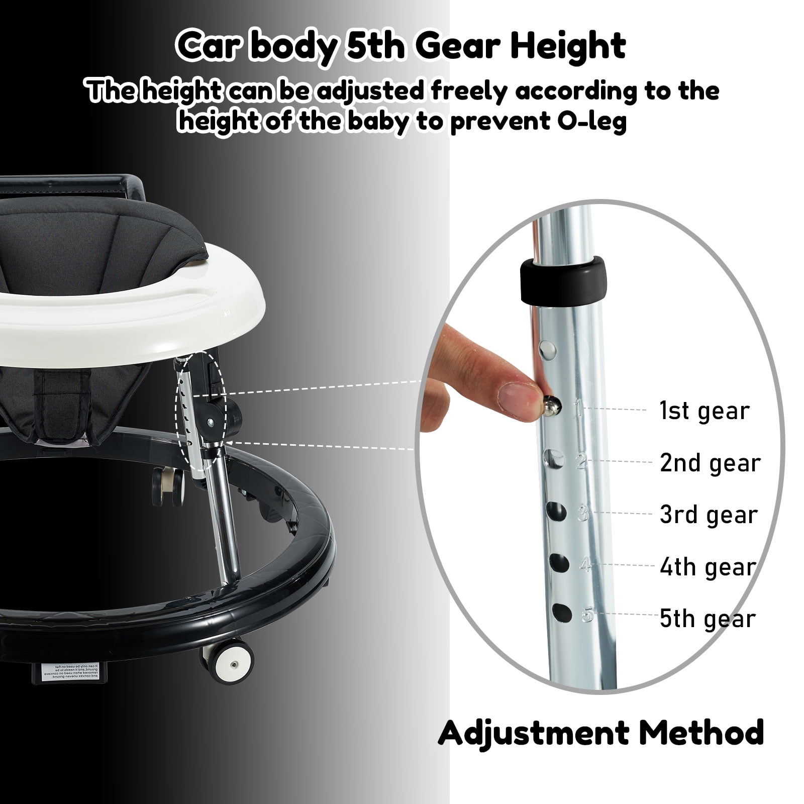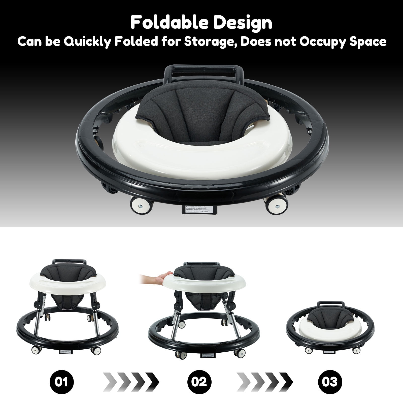 Baby Walker, Foldable 5-Gear Height Adjustable Baby Walker with Wheels, Infant Toddler Walker with Foot Pads, Anti-Fall Baby Walkers and Activity Center Bouncer Combo for Boys and Girls 6-28 Months