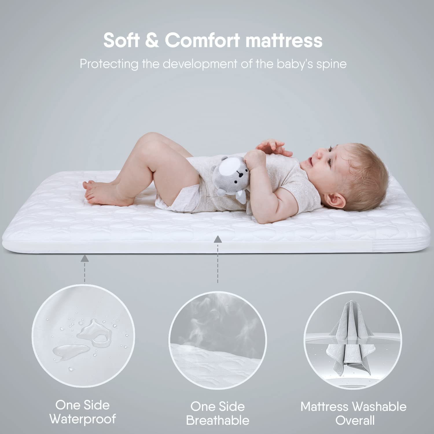 3-in-1 Baby Bassinet: Our BabyBond Unisex 23.3 lb bassinet can be turned into an independent crib, bedside bed, diaper changing mode, 0-6 months can use independent crib and bedside bed mode, 6-12 months can use diaper changing table mode, can meet the needs of infant and toddler growth The ultimate sleep experience for babies: The bedside bassinet is made of soft skin-friendly material all over the fabric, which can protect the delicate skin of newborns. Newborns sleep for up to 14-17 hours a day, we are equipped with a silicone soft and breathable mattress to make your baby sleep more peacefully and comfortably. The exclusive washable material of the mattress makes cleaning easier More comfortable for babies, more relaxed for mothers: Our sheets are double-sided design, one side air cotton, with the mattress to form a double layer of soft, one side waterproof design can completely isolate water damage infiltration into the mattress, both to make the baby sleep more comfortable, but also to make the mother cleaning more convenient Bringing you closer to your baby: Our baby bassinet has 6 adjustable heights to fit adult beds that are between 22 and 26-3/4 inchs, making it easier for you to feed and soothe your baby at night. 3-7° adjustable angle prevents baby reflux More breathable, more easily observed baby: Our bedside crib is fully mesh, with smoother air circulation, which prevents the risk of suffocation and lets babies sleep more comfortably. Watchable mesh, parents can observe the baby’s movement at any time from a distance Size:36.81 x 21.65 x 22.63 Inches
