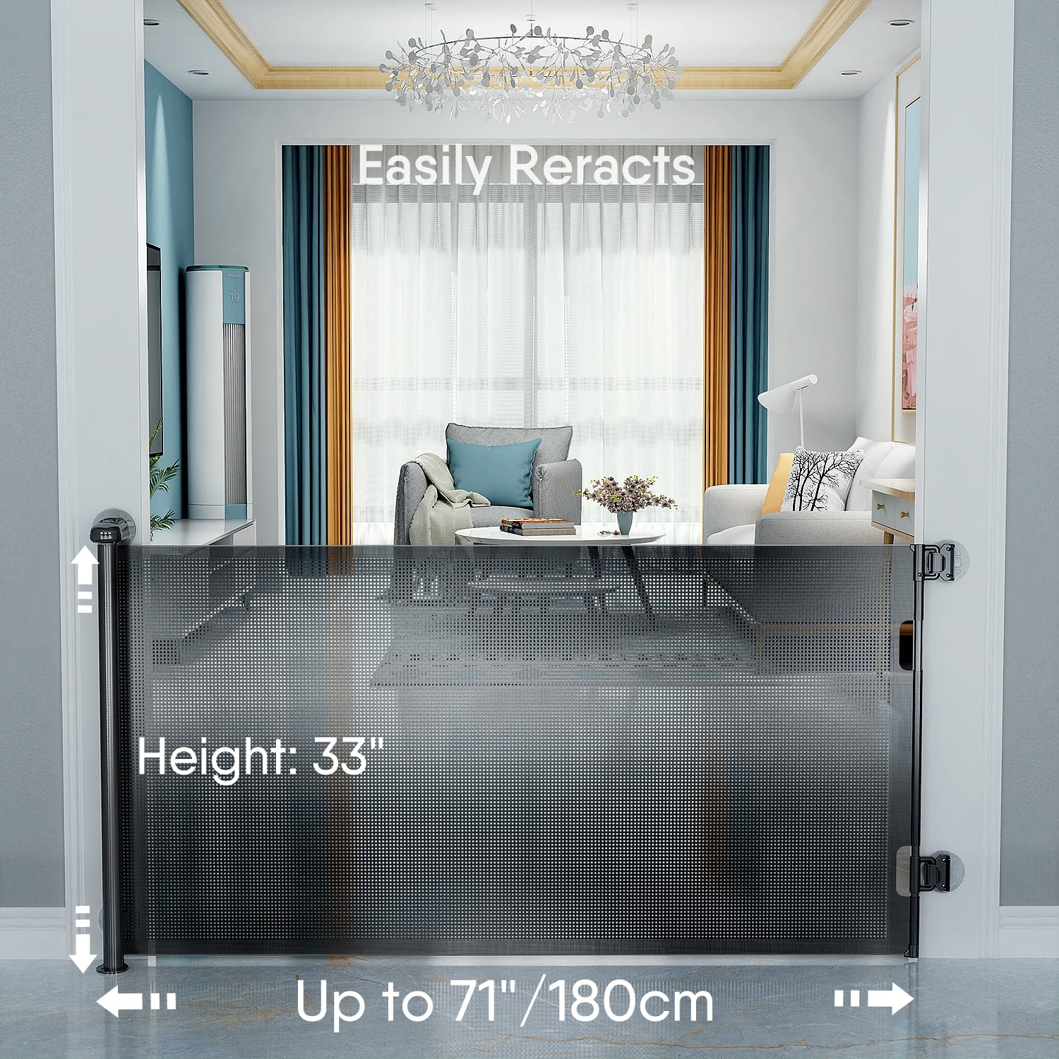 BabyBond Retractable Baby Gates for Doorway, Punch-Free Install Extra Wide 71” x 33” Tall for Kids/Child or Pets Indoor and Outdoor Dog Gates for Doorways, Stairs, Hallways, Black