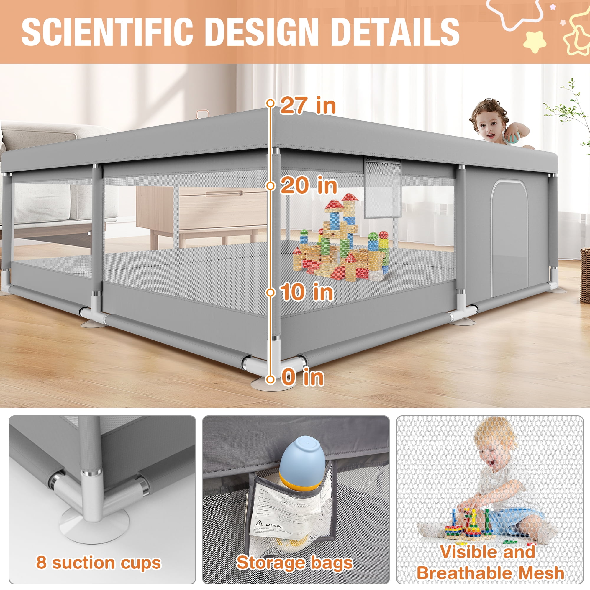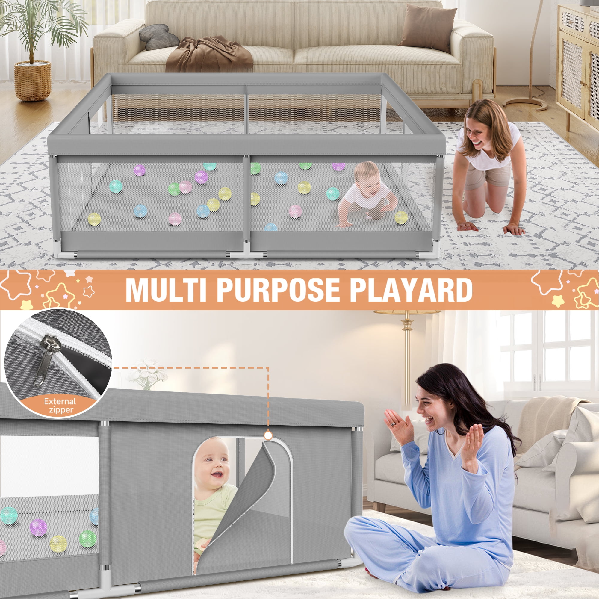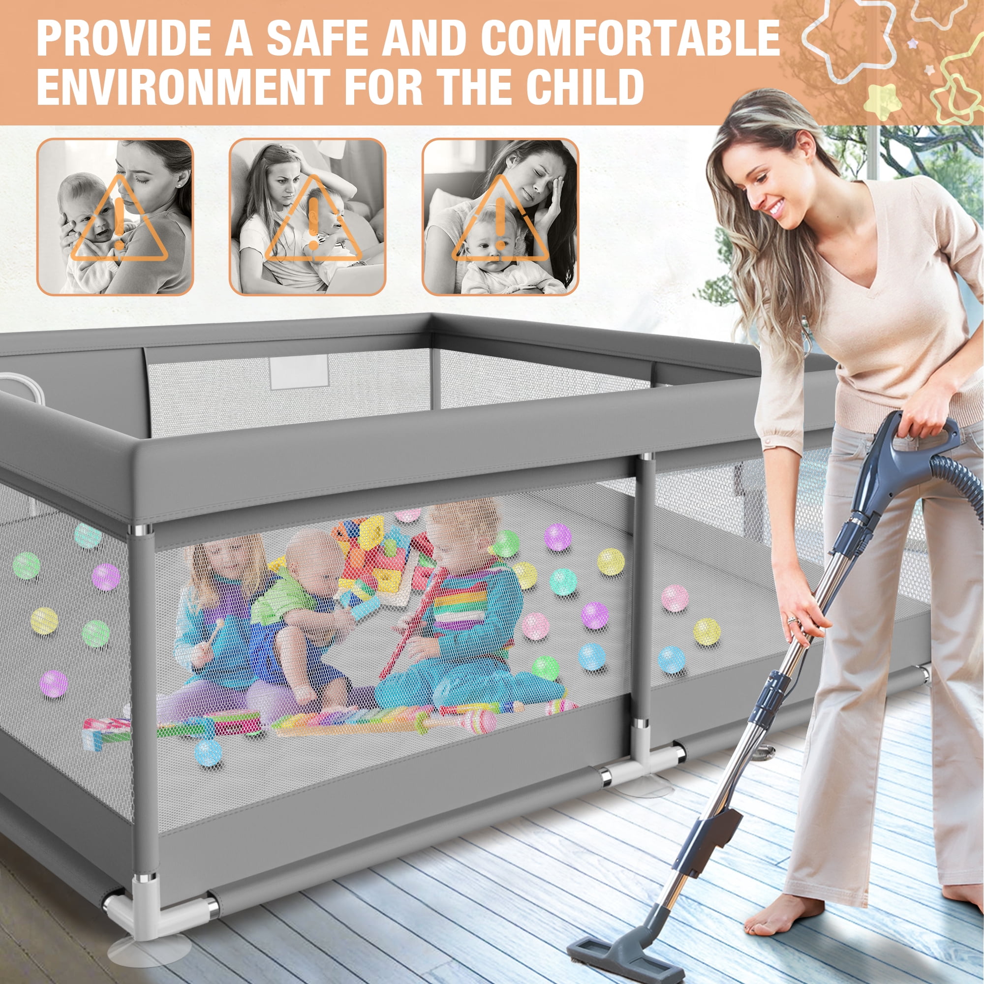 ❤️ [Spacious Baby Playpen with Mat] Our playpen offers a safe and ample space for babies or toddlers to play. It provides plenty of room for movement and play. The included playpen mat adds cushioning, creating a soft and cozy surface for crawling, rolling, and playtime. It accommodates adults, making it perfect for family bonding. ❤️ 【Free Parent’s hands】With the help of TEAYINGDE Large baby playpen, turns it into a great safe playgrounds for babies! Help kids explore the world of perception, play and learn to move in their own, and keep it away from being lost or exposing to hazard areas as well. Meanwhile, the parents can free their hands to do their own things. ❤️ 【Baby’s favorite play space】Todale’s playpen for toddlers, the size is 50 * 50 * 27inch , the height of the baby fence is long enough for toddlers 6 months to 6 years old to stand and walk. The area is large enough, both you and your little one will enjoy immense comfort whenever you use your indoor/outdoor play area. ❤️ 【360° full vision design】Visible soft breathable mesh in the side panels. See-through mesh that allows to you sees the baby, and the baby sees you, make them feel comfort and safe. The external gate zipper design, allow to interact with your baby at any time, give your baby a sense of security. ❤️ 【Safe no gap playpen for babies】It is made of wear-resistant, tear-resistant cationic fabric and strong steel pipe. There are 8 sturdy safety non-slip suction cups on the bottom, which are difficult to move or tip over. A thicker sponge has been added to prevent children from being hit while playing. At the same time, our fence is entirely wrapped in soft cloth, there is no exposed gap, there is no danger of pinching, and it is safer than plastic baby playpen. ❤️ 【Easy to assemble, store and clean】The baby fences pipe are made of rust-proof alloy pipes and ABS joints connection, easy to disassemble and assemble. The bottom is made of wear-resistant, tear-resistant, non-slip, breathable, quick-drying, fabric. Only need to wipe with wet cloth and soap to clean.