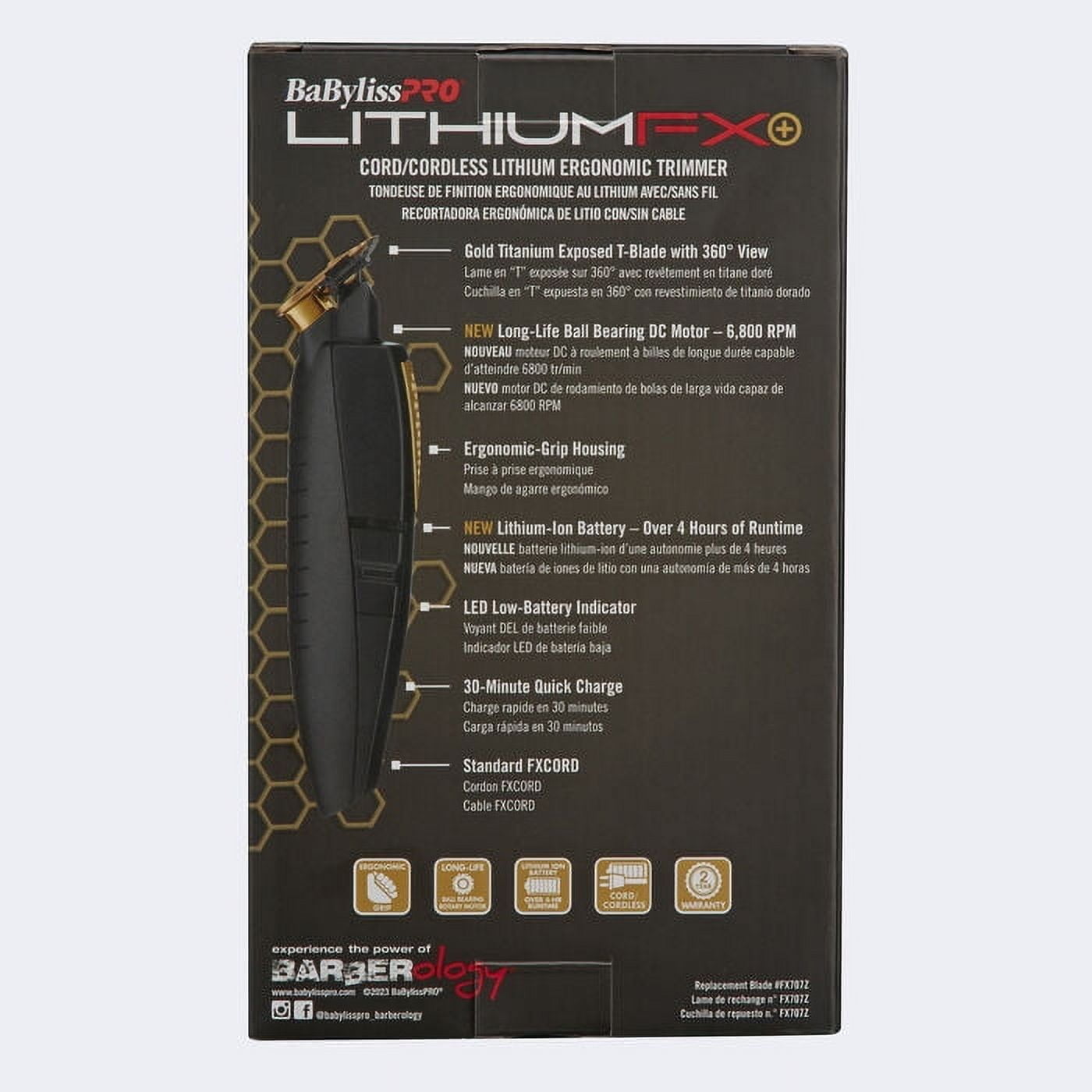 BaBylissPRO LithiumFX Plus Cord and Cordless Lithium Ergonomic Professional Hair Trimmer