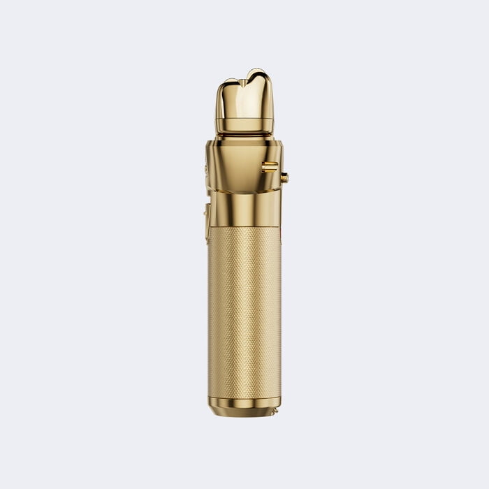 N1 Brushless Motor – Dual Bearing for More Efficiency – 10,000 RPM / 20,000 SPM Interchangeable Lithium Battery Pack (FXBB24) – Up to 3 Hours of Runtime – Button for Quick Battery Release – 4 – Stage LED Ring Battery Indicator Pivoting Foil Head with Locking Feature – Offset Double Foil System – Hypoallergenic Gold Titanium Foils Ergonomic All-Metal Housing with Magnetic Foil Cap – Knurled Metal Barbell Grip Tapered End Cap with Hidden Hanging Hook