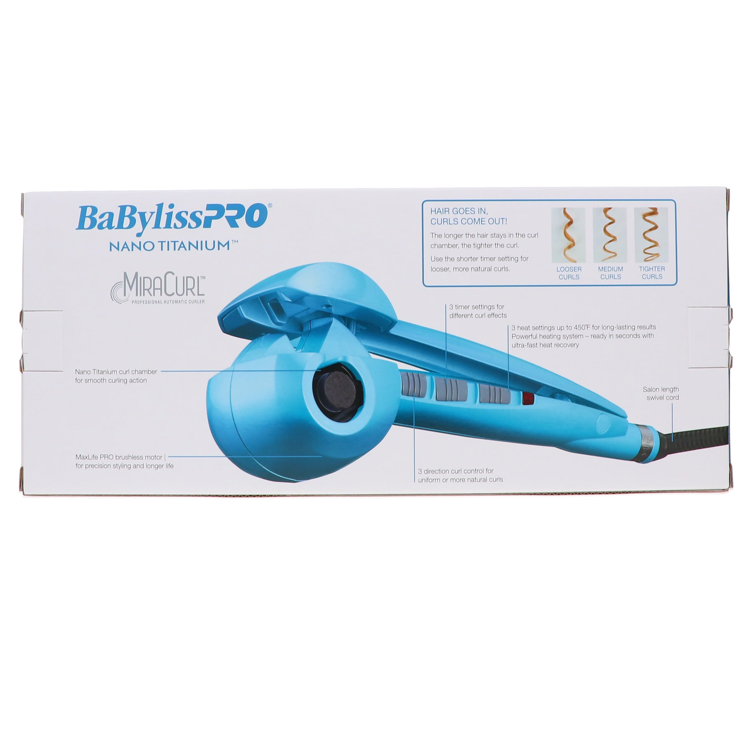 You’ve never seen a styling tool like the BaBylissPRO Nano Titanium MiraCurl Iron. Designed for professional-quality results, the MiraCurl features a specially designed nano titanium curl chamber that draws in each stand to gently heat and release it. Precision timing and a brushless motor give you perfect waves and curls, time after time.