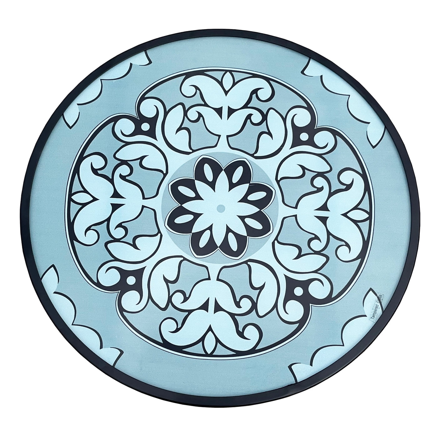 Backyard Expressions 18″ Portable Folding Patio Table | Compact Size | Tempered Glass | Ornate Design | 906191
