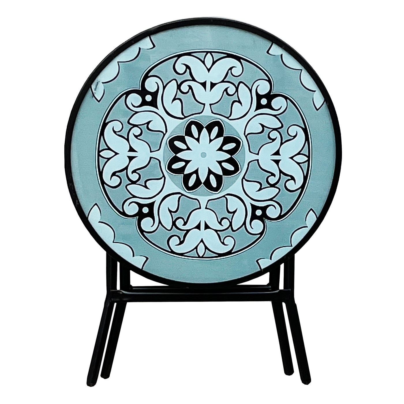 18″ diameter fits perfect in outdoor and indoor spaces Anti-rust, powder coated steel frame and beautiful mosaic glass top Lightweight and foldable makes it easy to move and store