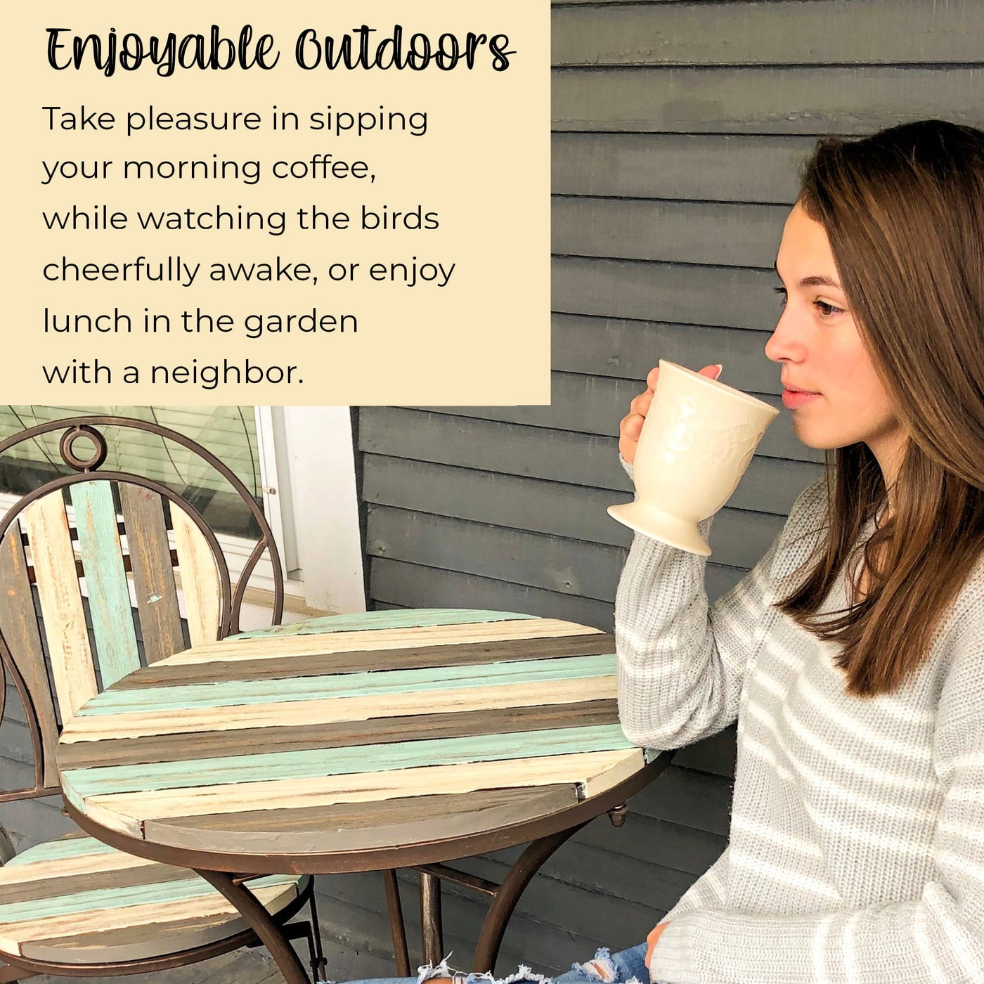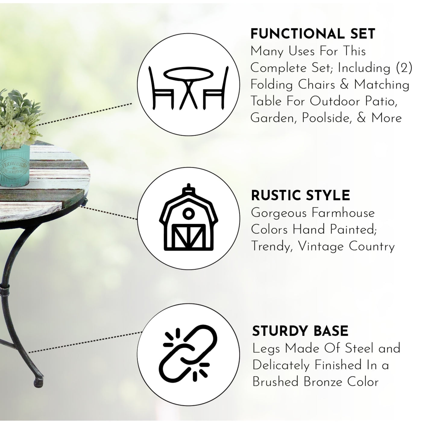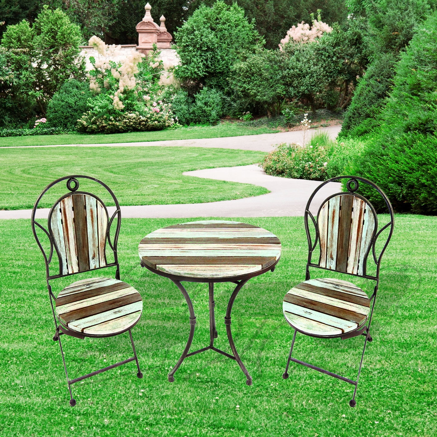 Backyard Expressions Farmhouse Metal and Wood Slat Bistro Set | 3 Pc